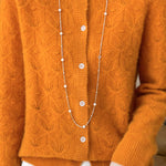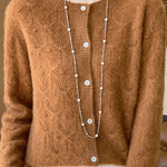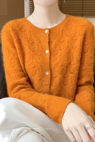 Cardigan,crew neck long-sleeve loose fit,front center with openable buttons,full-body with circle-patterned jacquard and hollow-out design |
