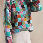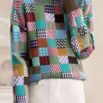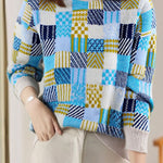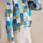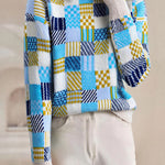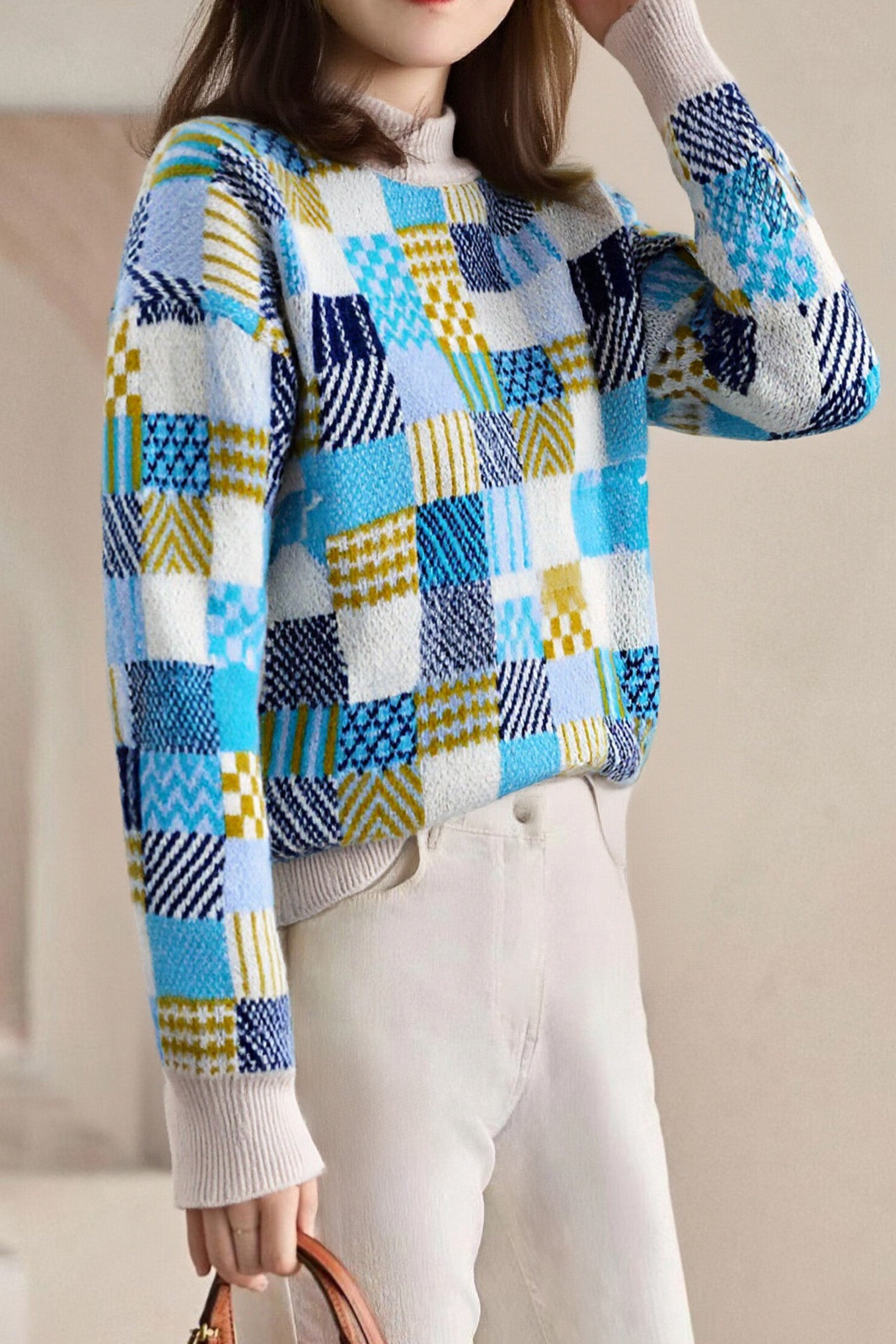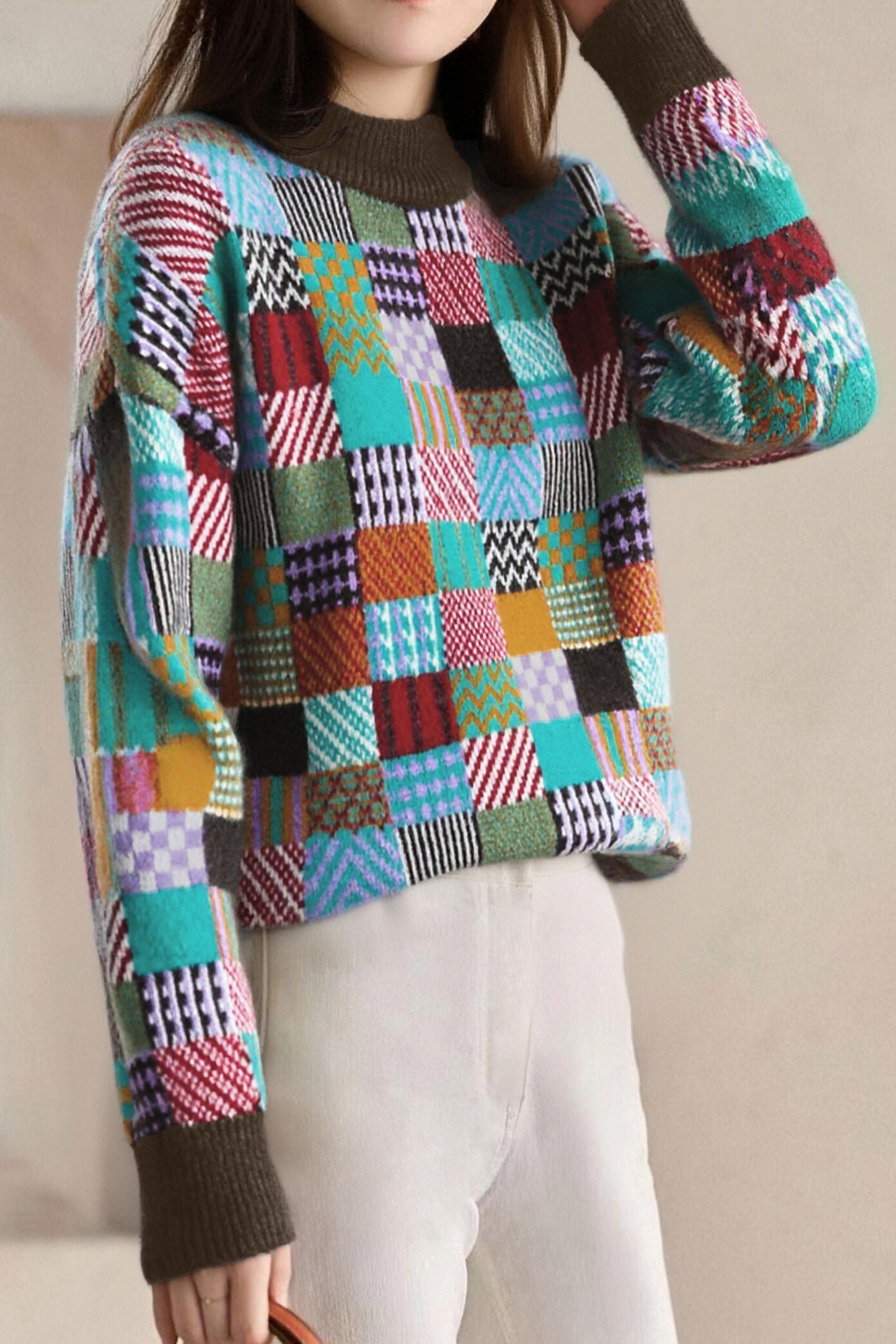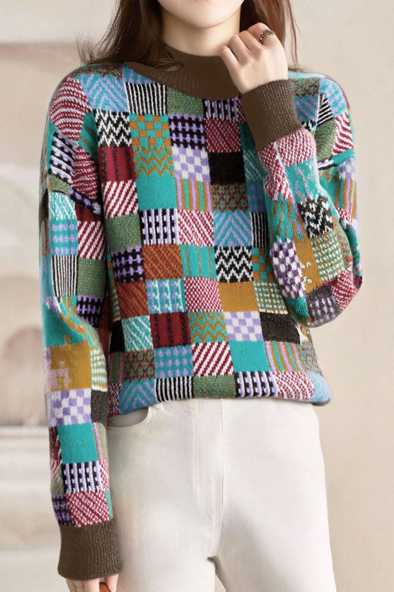 Casual Versatile Plaid Color-Block Half-High Neck Sweater
