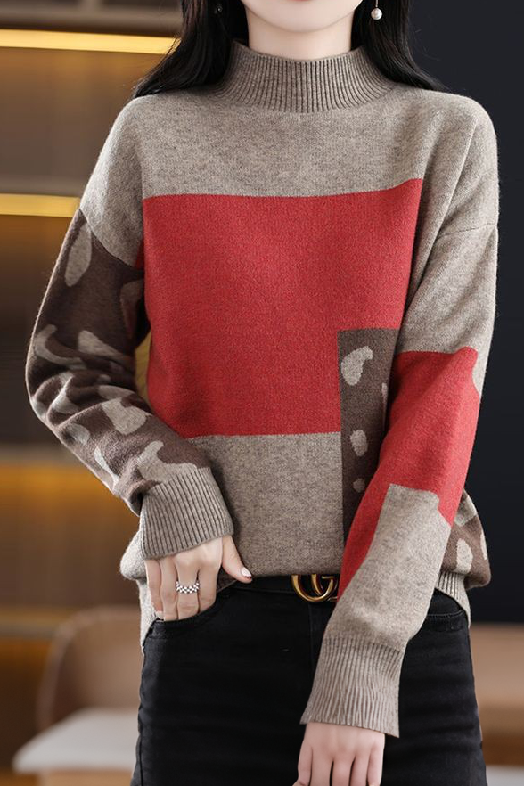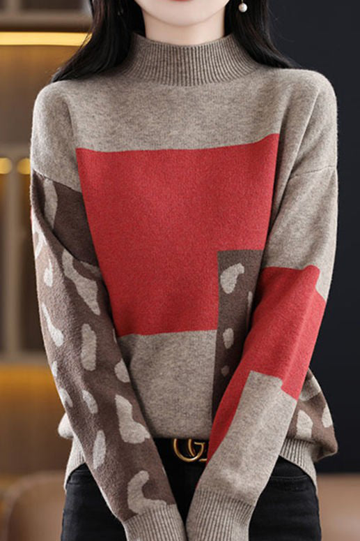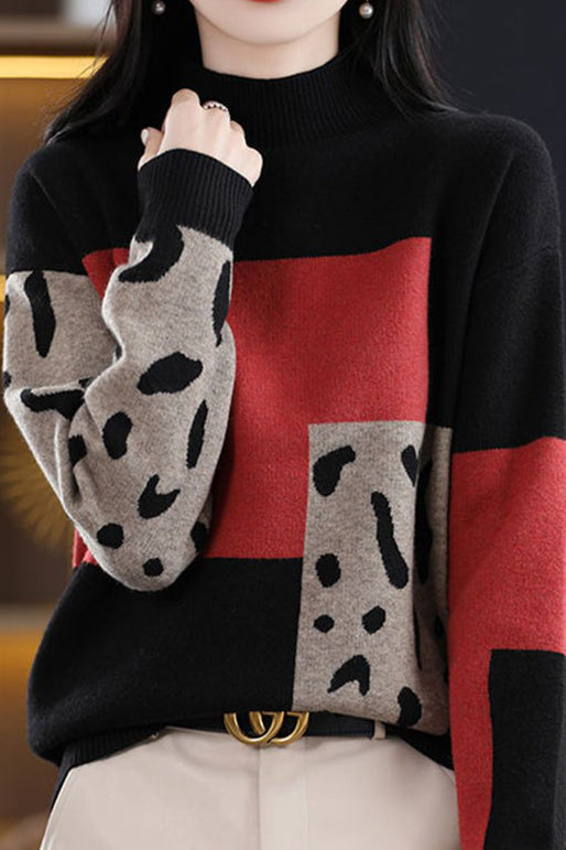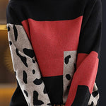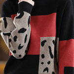Casual Versatile Color-Blocked Cow Print Pullover Sweater