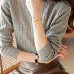 Casual Versatile Solid-Color Chunky Ribbed Half-High Lapel Knitted Top