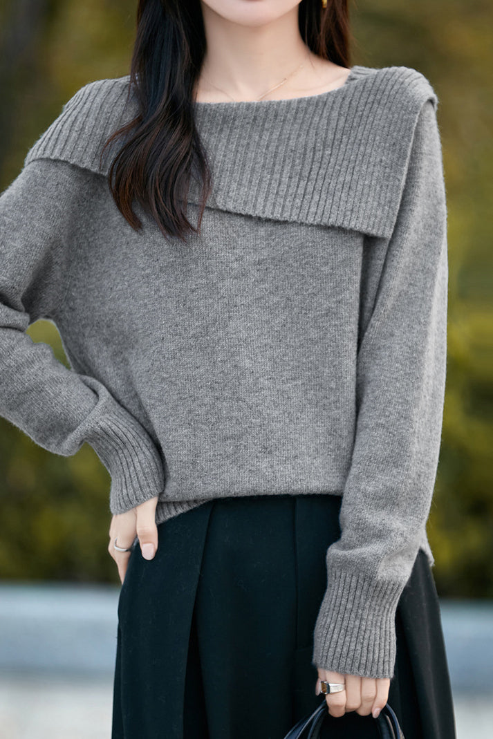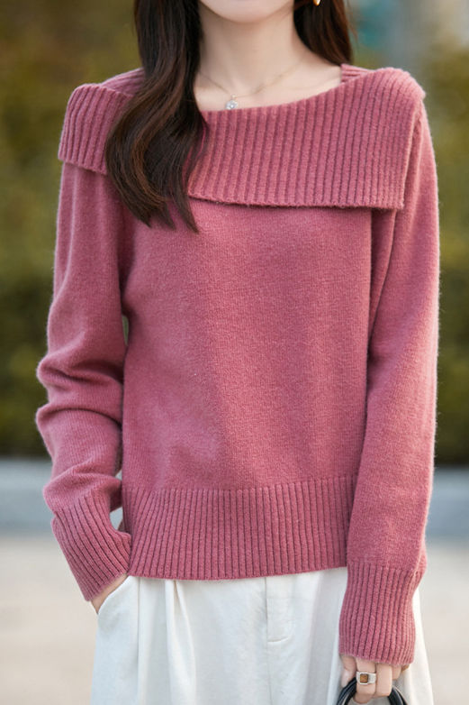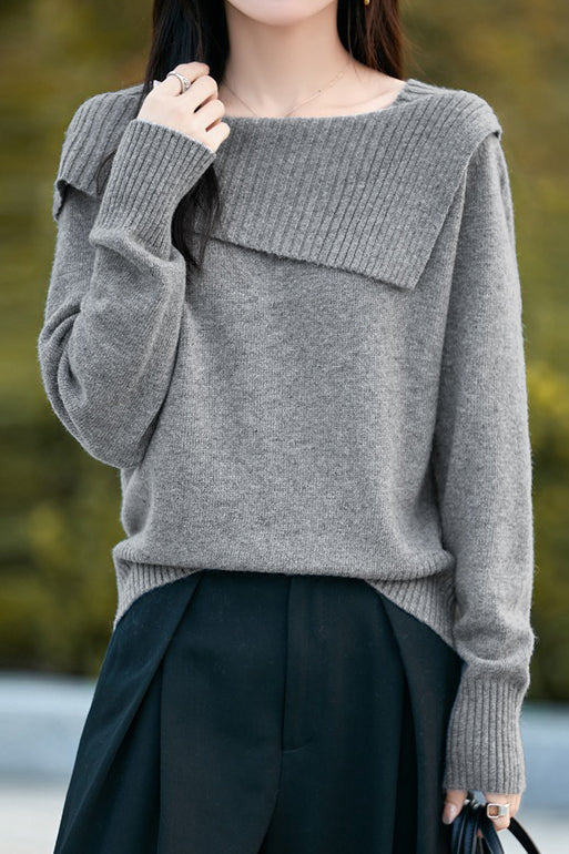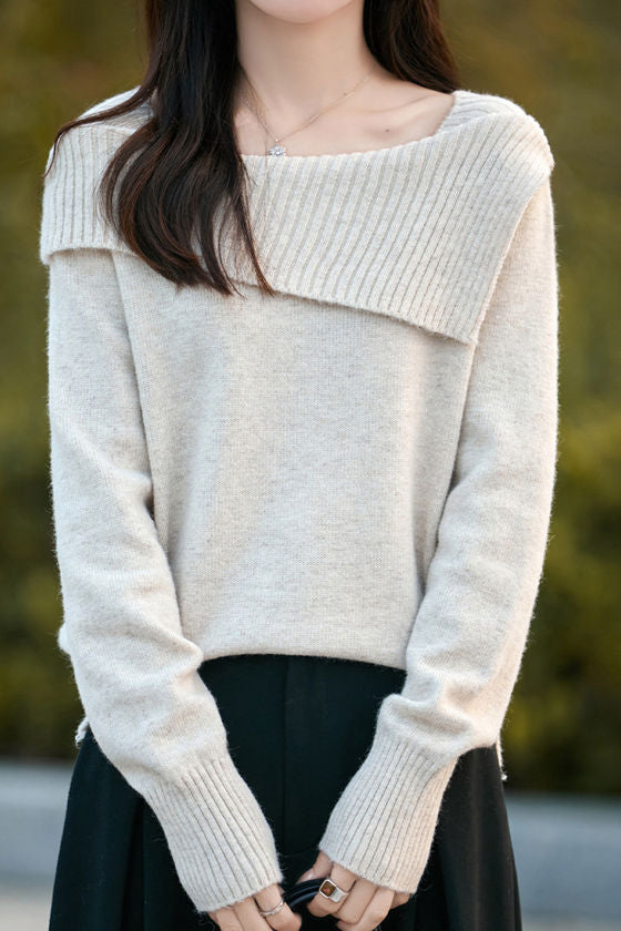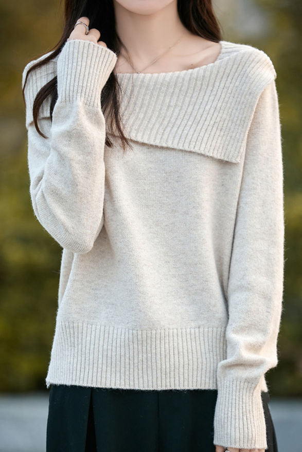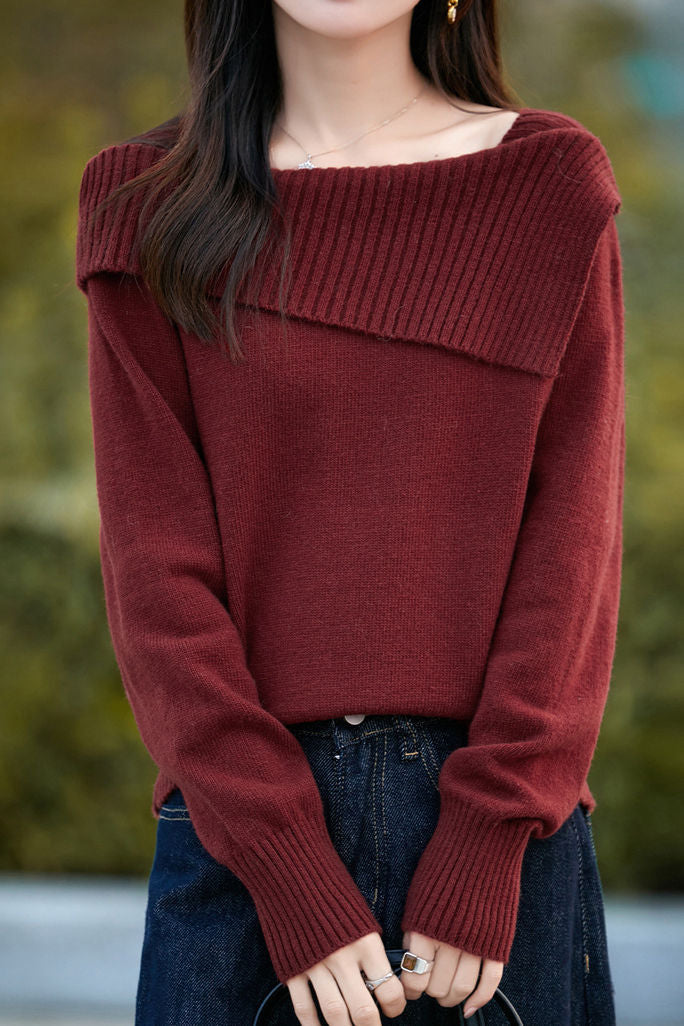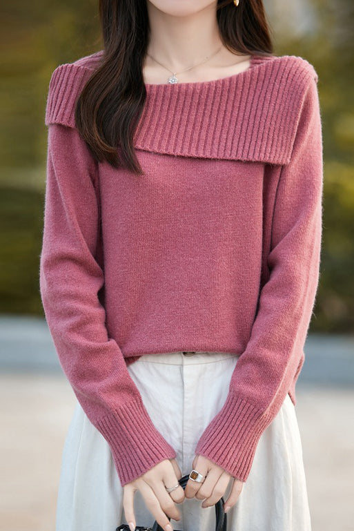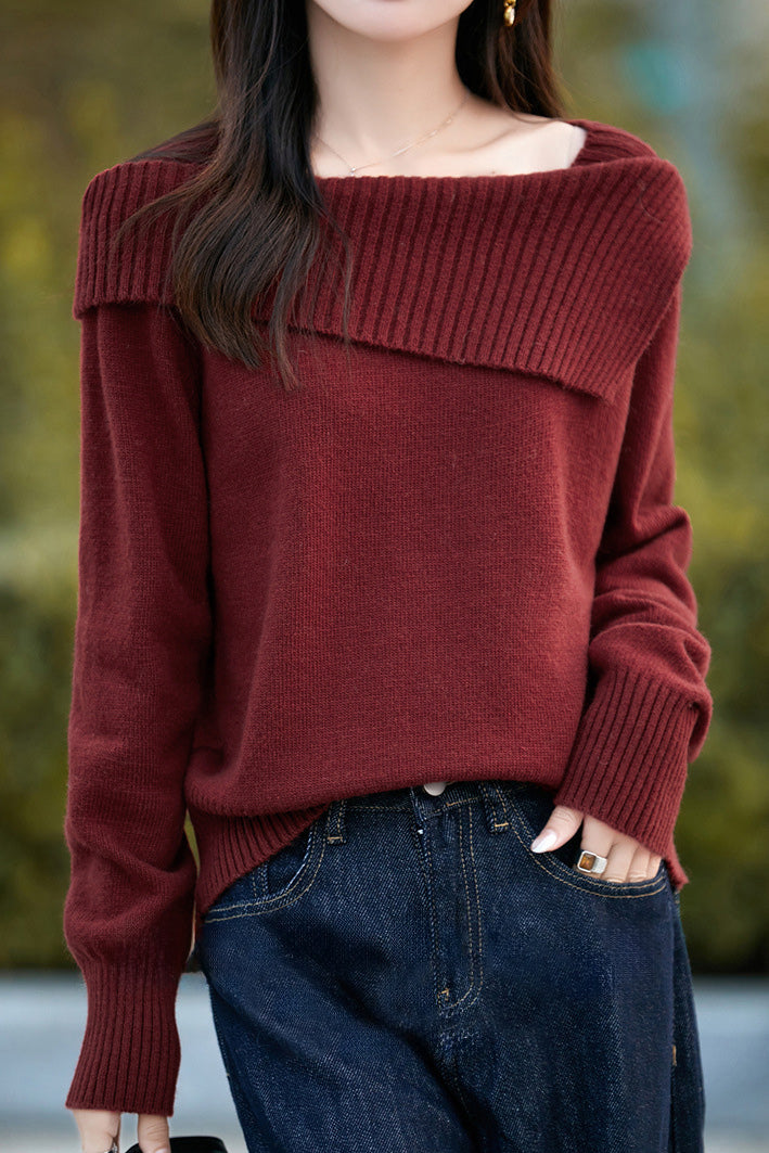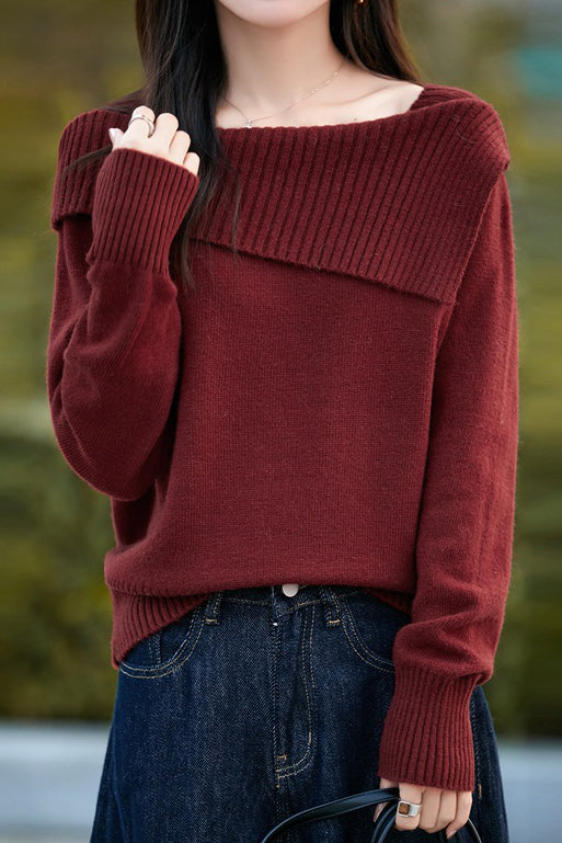 Casual Versatile Off-the-Shoulder Asymmetric Pullover Knitted Top