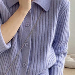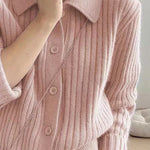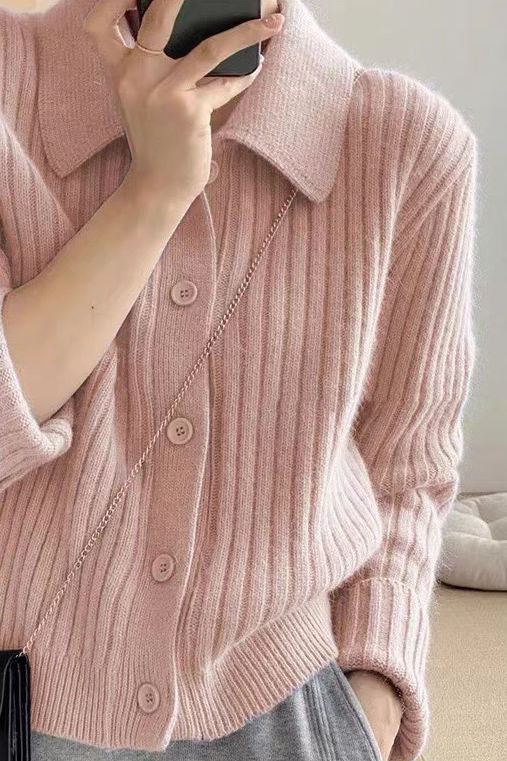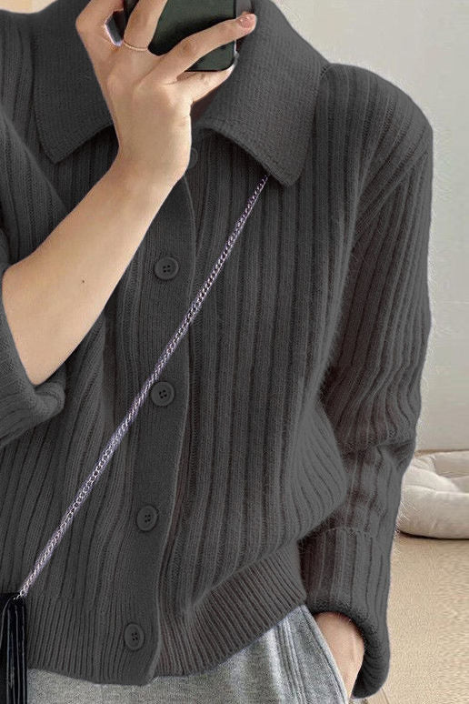 Casual Versatile Lapel Solid-Color Long-Sleeve Knitted Cardigan