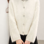 Cardigan,crew neck long-sleeve loose fit,front placket buttons unbuttonable,front placket buttons and collar circumference with hot-fix rhinestone design |