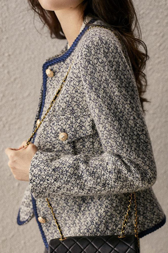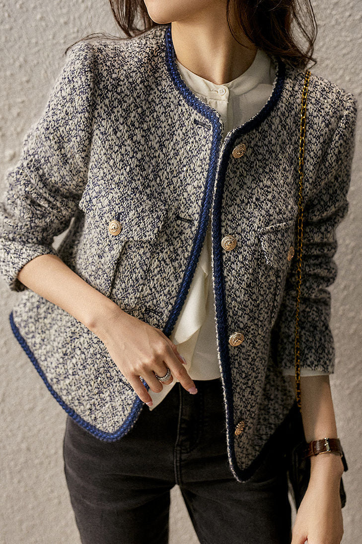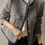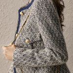 Exquisite Elegant Tweed Gold Thread Color-Block Jacket Coat