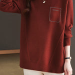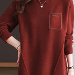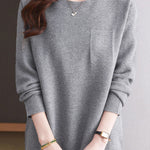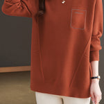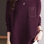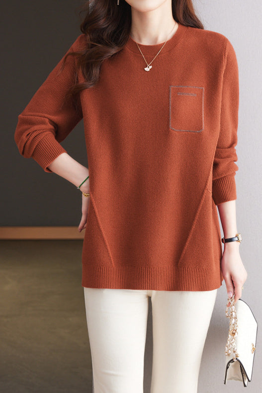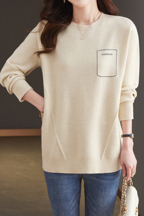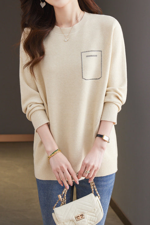Pullover sweater,crew neck long-sleeve loose fit,rhinestone appliqué on the chest,waist with dividing line decoration to prevent monotony |