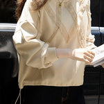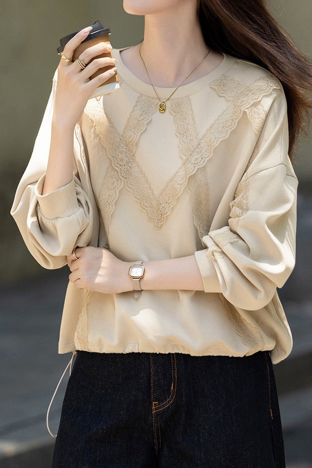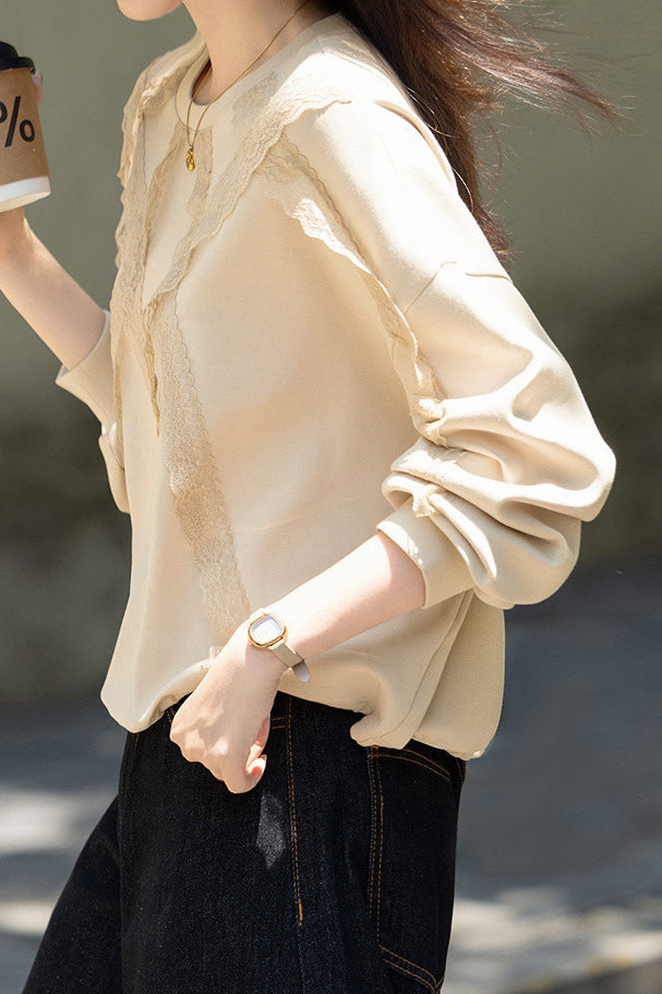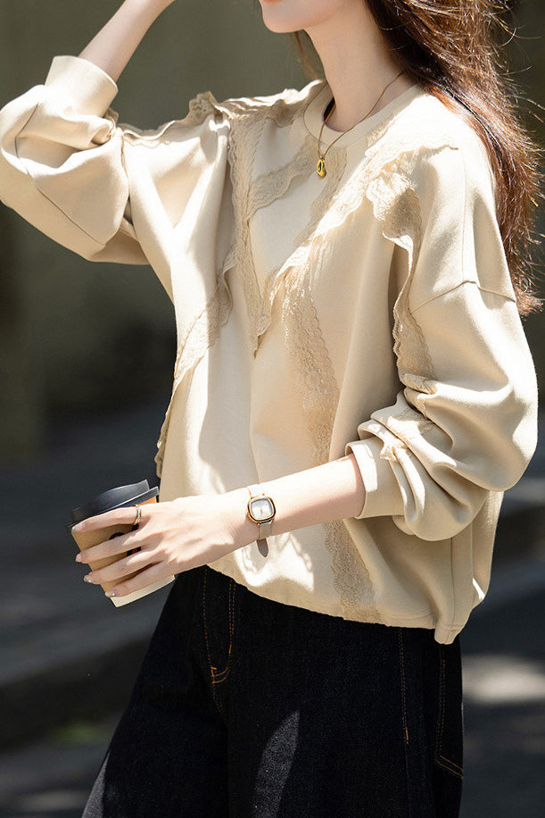 Casual Temperament Lace Pullover Crew Neck Long-Sleeve Sweatshirt