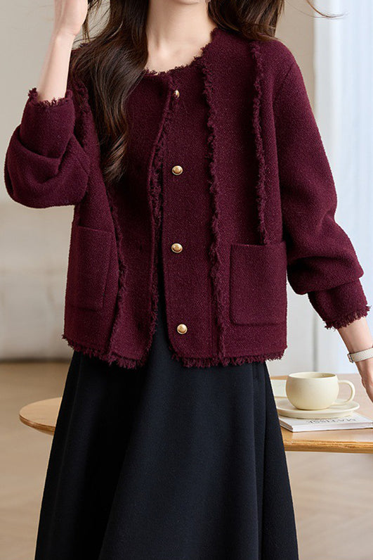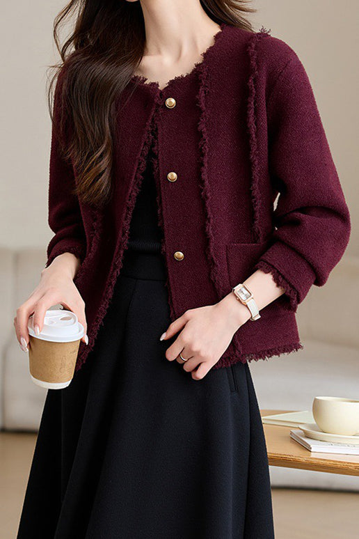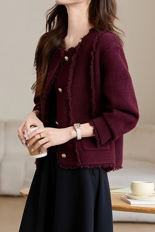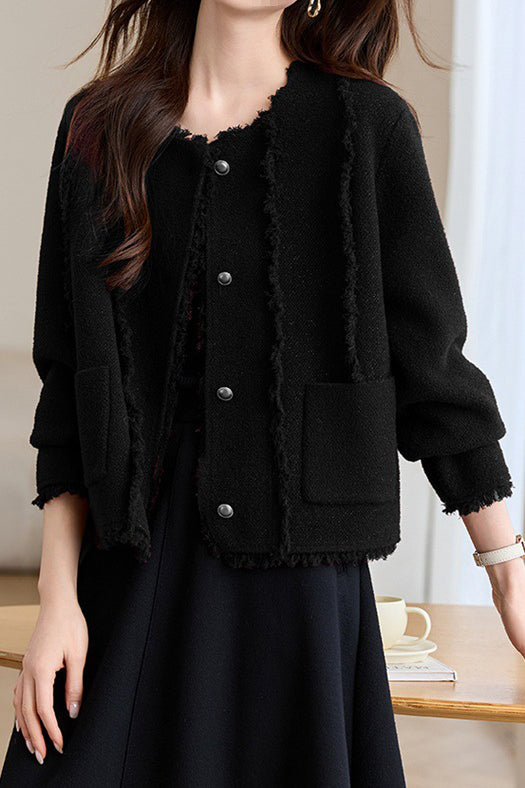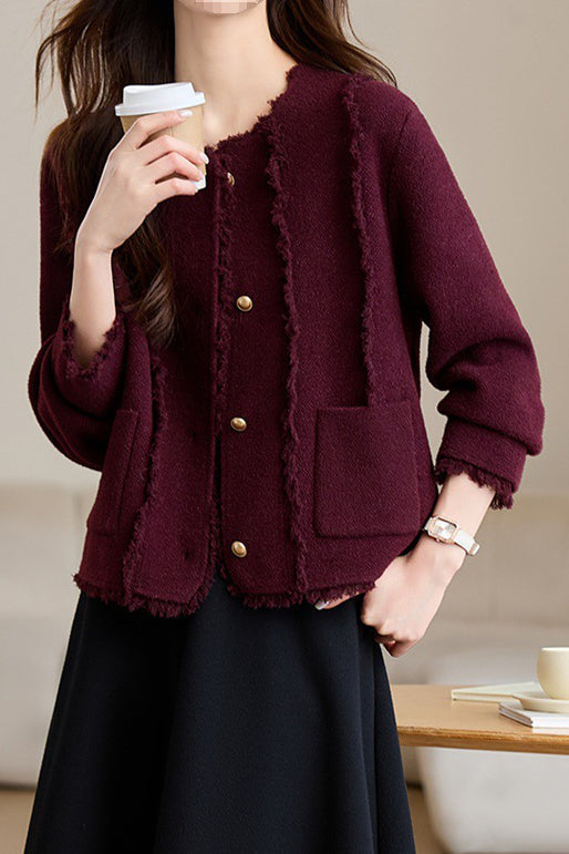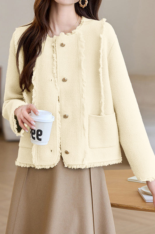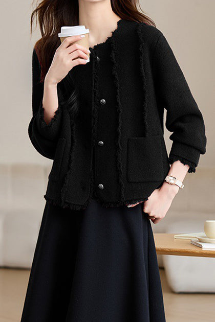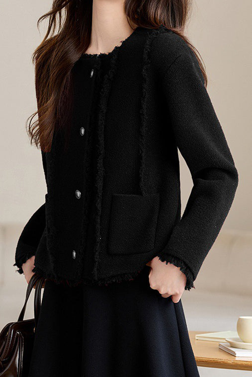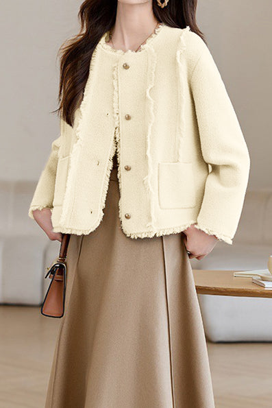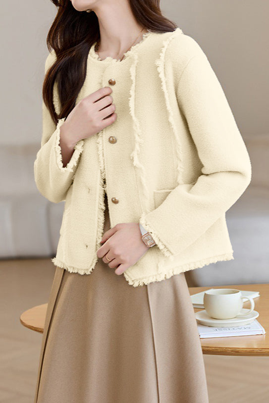 Casual Temperament Crew Neck Fringed Lurex Short Coat