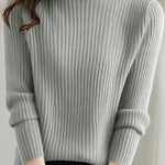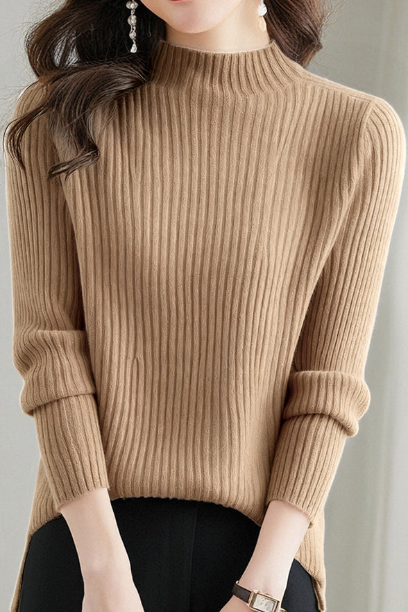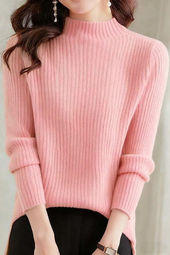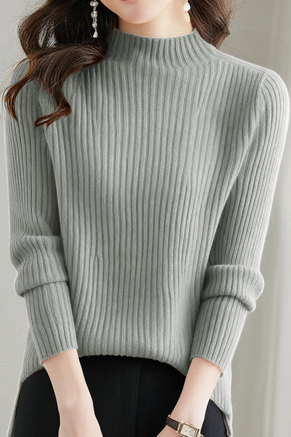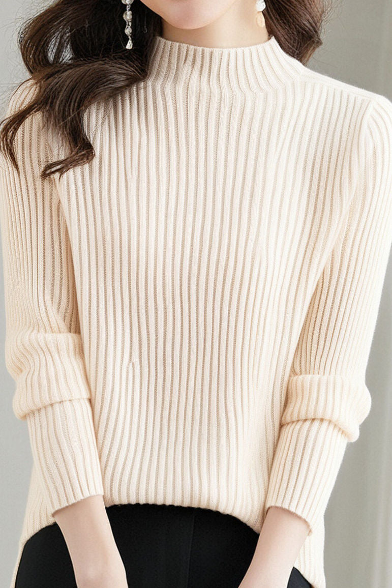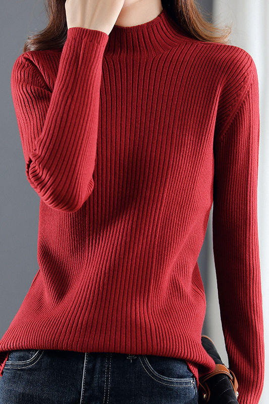 Casual Minimalist Pullover Half-High Neck Long-Sleeve Knitted Top