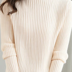 Knitted top, pullover half-high neck long-sleeve loose fit, body with simple ribbed texture design |