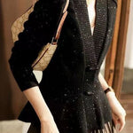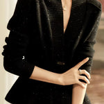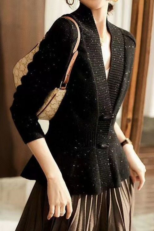 Elegant Temperament Solid-Color Lurex V-Neck Knitted Coat