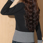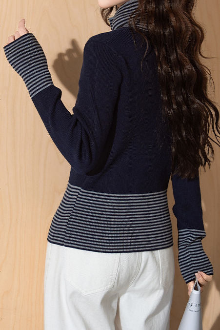 Casual Versatile Turtleneck Color-Block Striped Knitted Cardigan