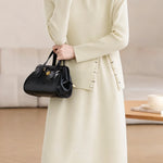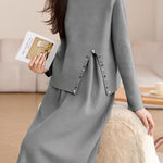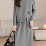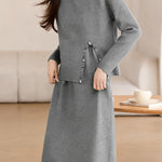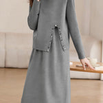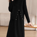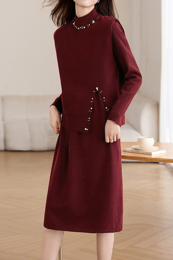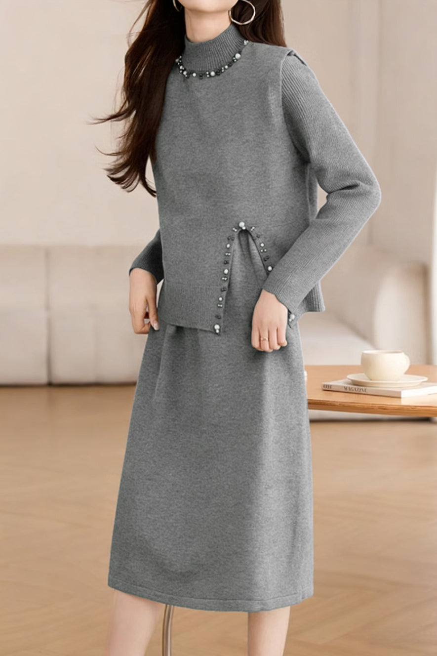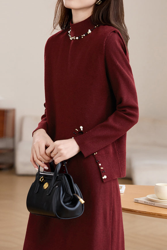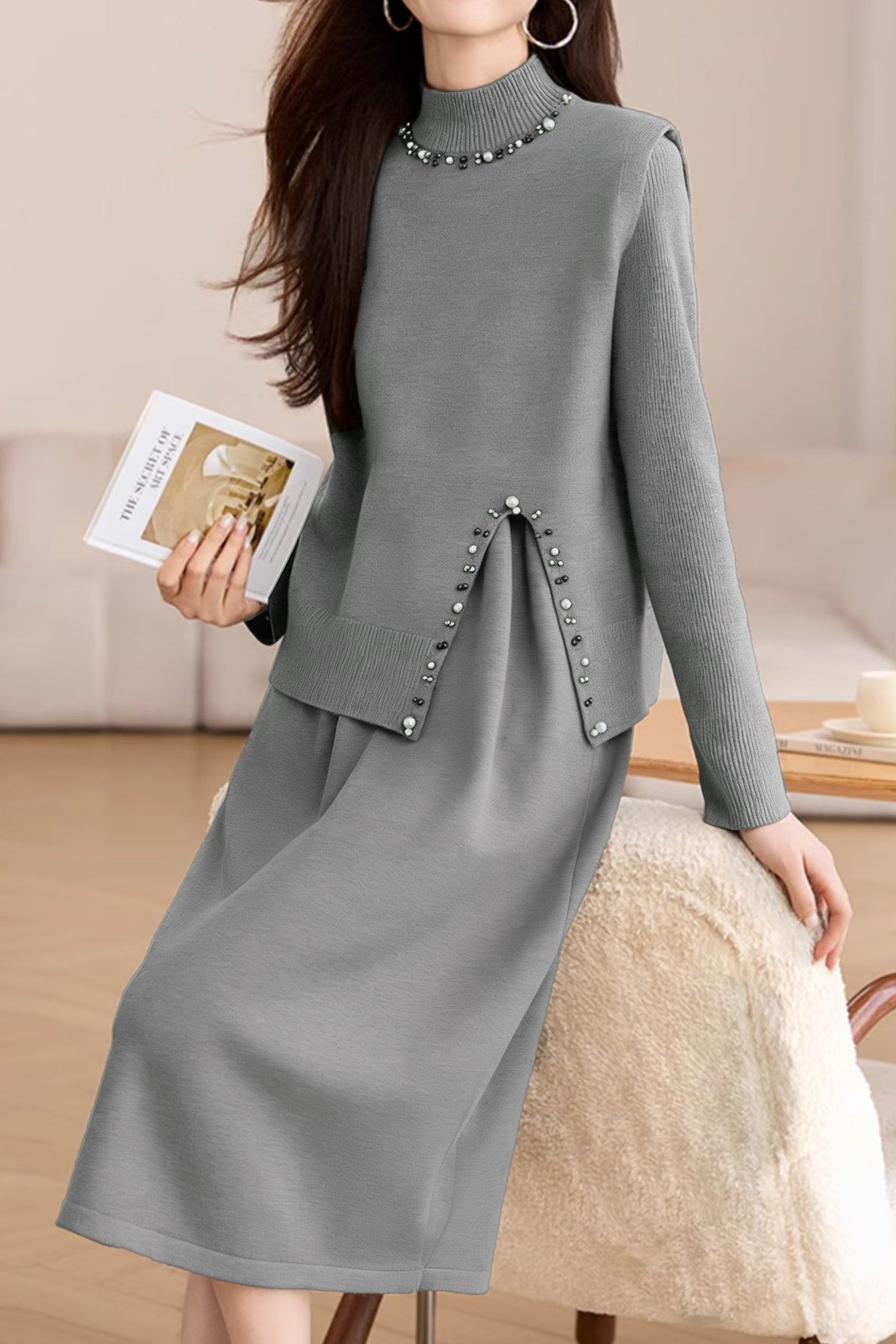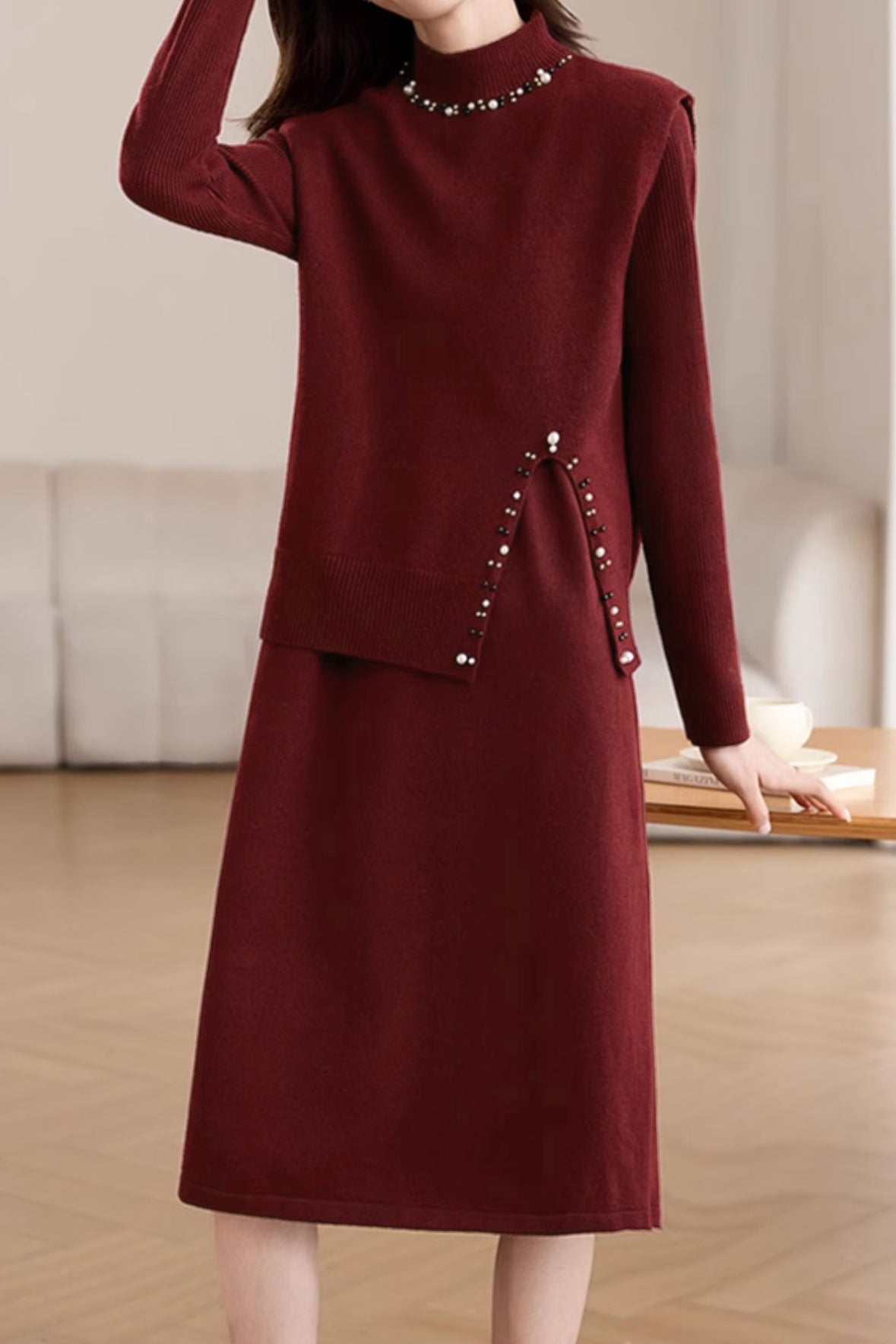 Dress, half-high neck design, neckline and sides decorated with decorative details for refinement, soft and delicate fabric, coordinated and neat fit of top and bottom |
