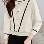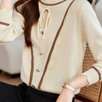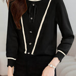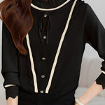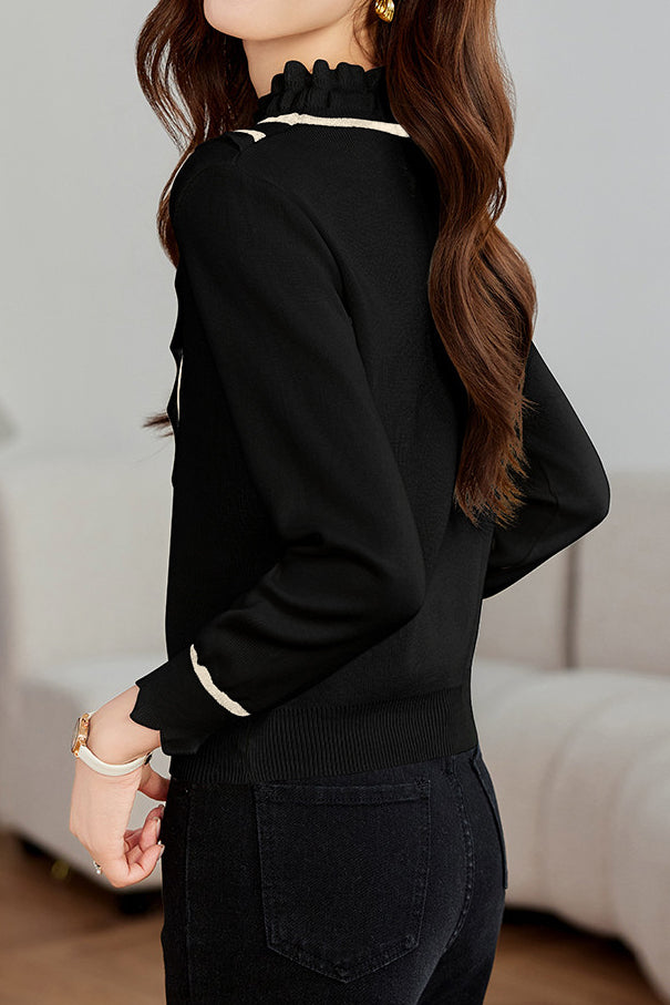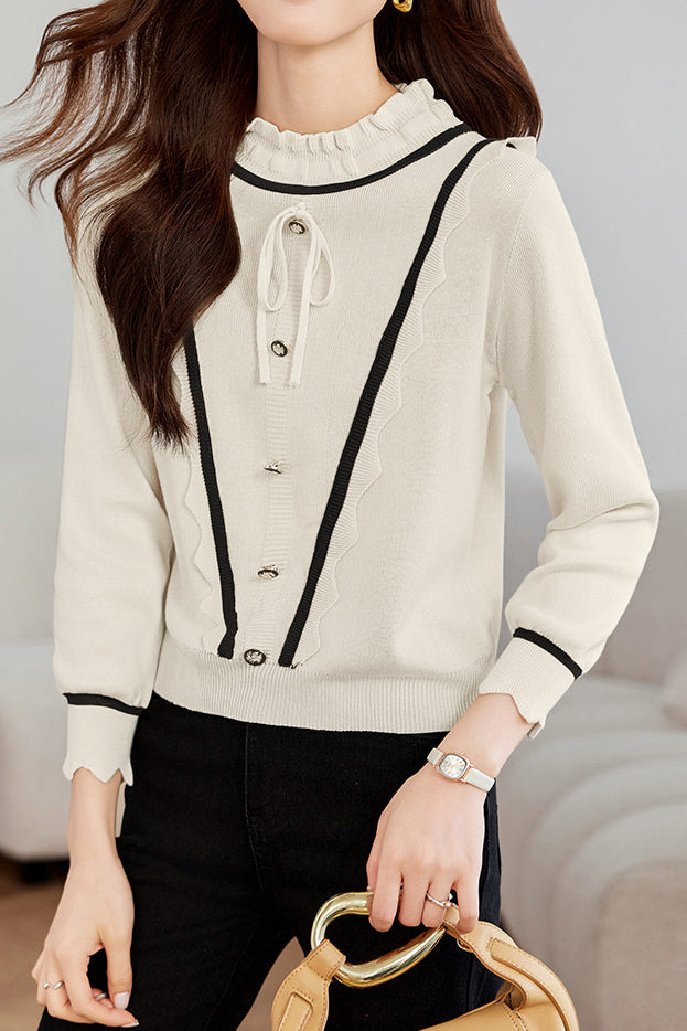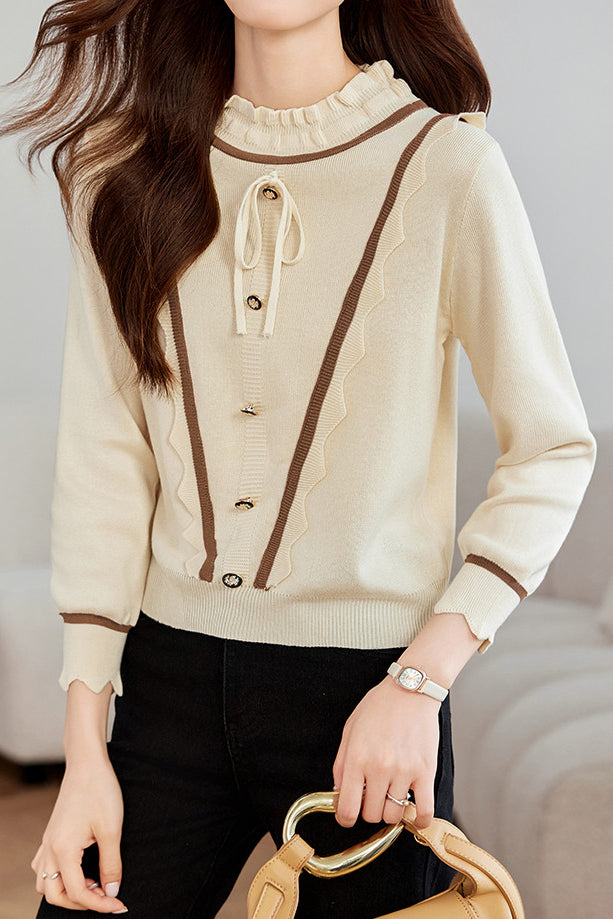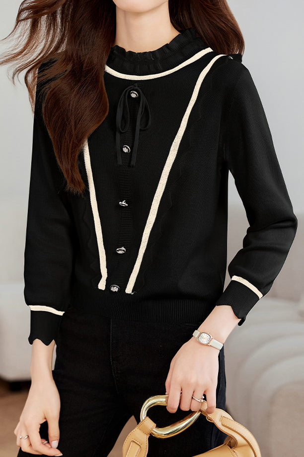 Casual Versatile Color-Block Ruffled Drawstring Knitted Top