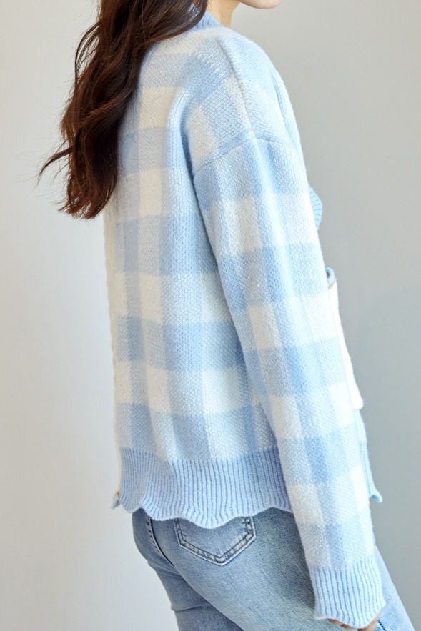 Casual Versatile Asymmetric Plaid Wave Cardigan