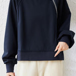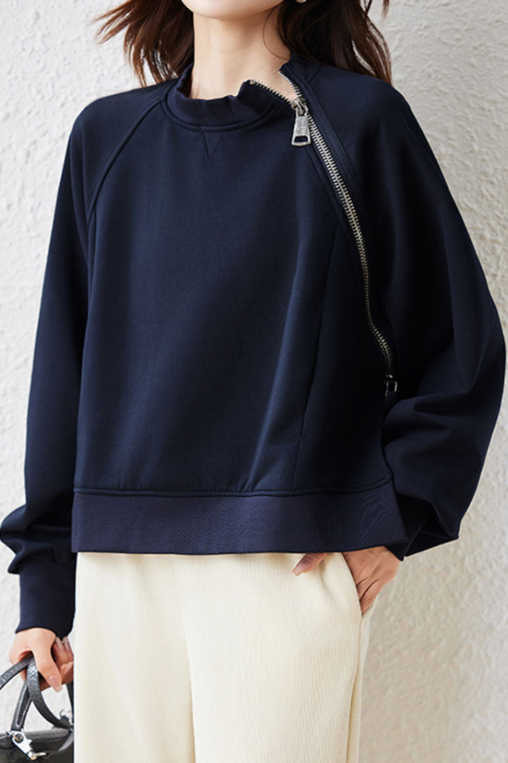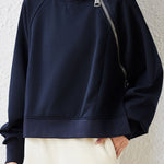 Casual Versatile Solid-Color Asymmetric Diagonal Zipper Sweatshirt