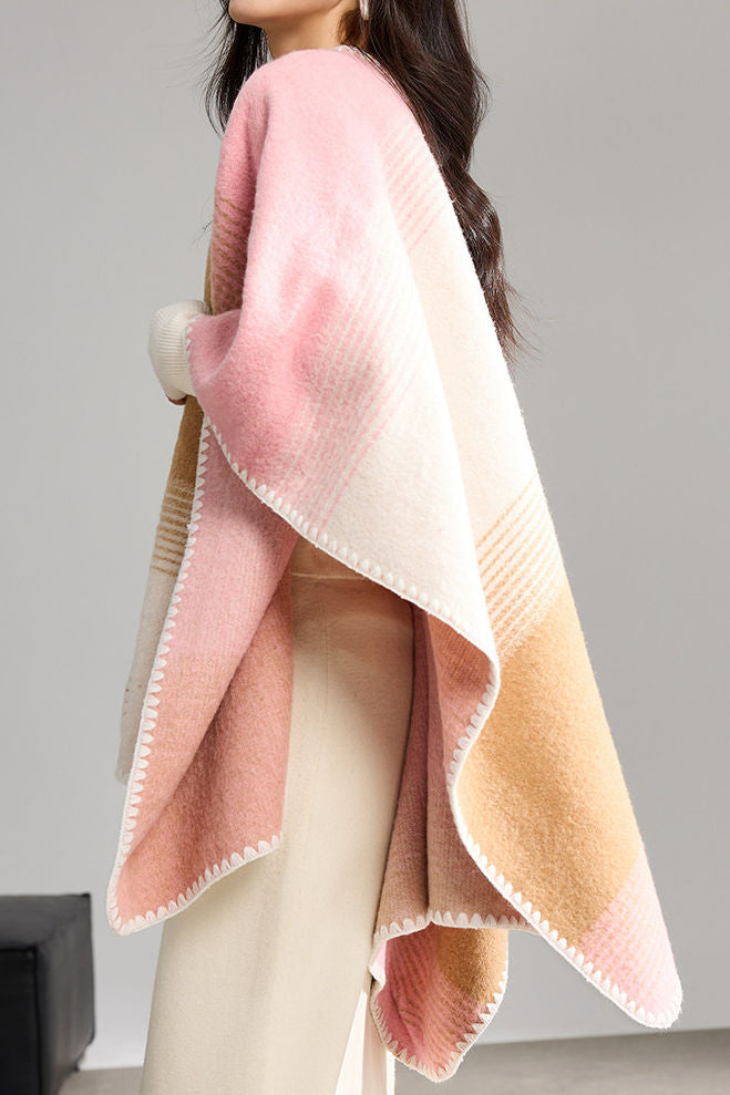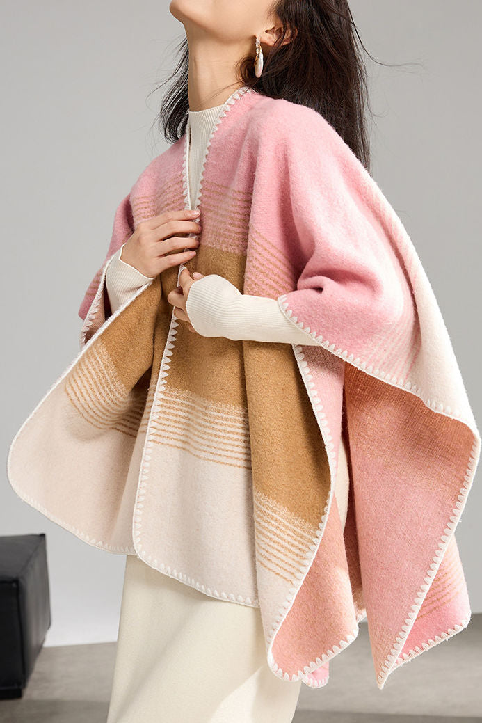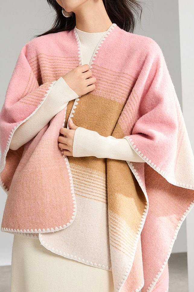 Shawl designed with an open front loose fit, showcasing a gradient texture for added depth, with serrated seam decoration at the edges |