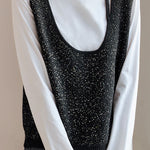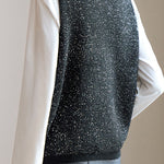 Vest, u-neck sleeveless loose fit, body with sequin decorations, neckline with hollow-out design, hem with ribbed texture |
