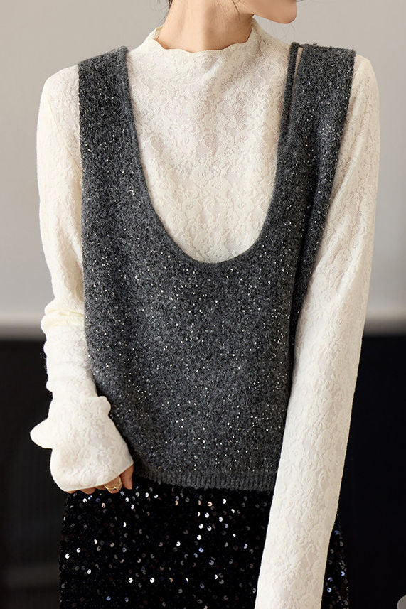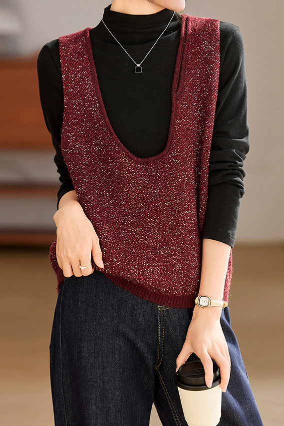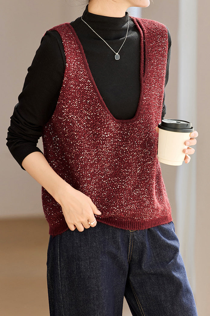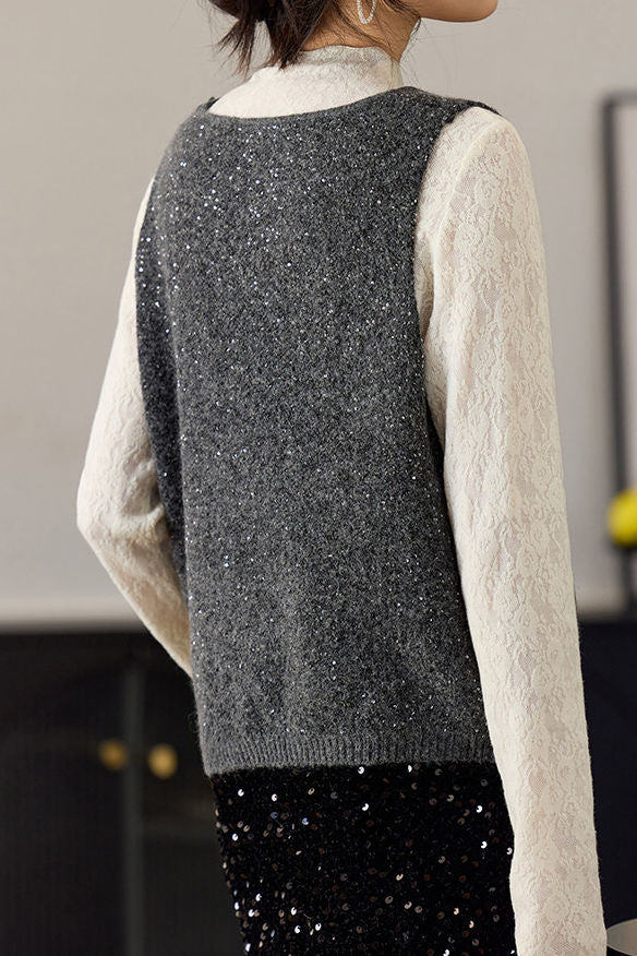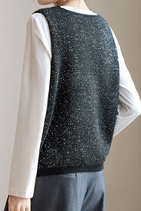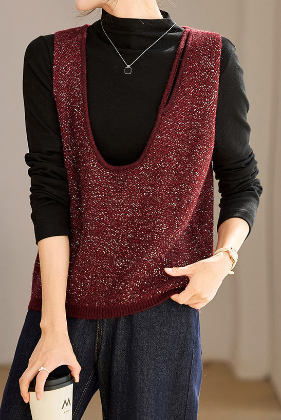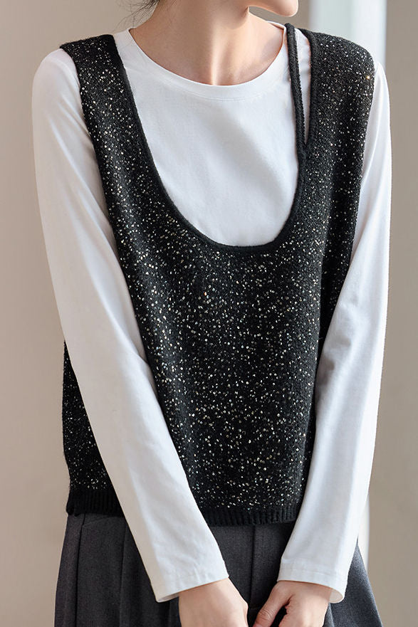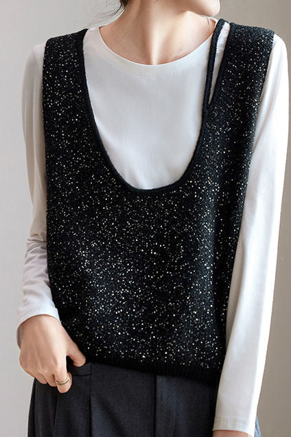 Casual Versatile U-Neck Sequined Sleeveless Vest