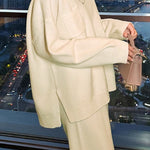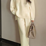 Casual Minimalist Long-Sleeve Knit and Wide-Leg Pants Two-Piece Set