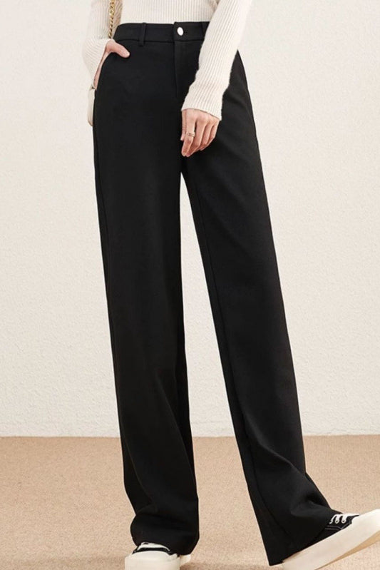 High Waist Drawstring Plain Knit Wide Pants - 4 Colors Available