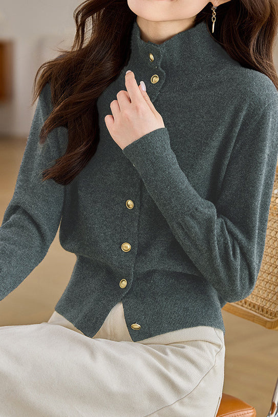 Exquisite Elegant Buttoned Stand-Collar Knit Top