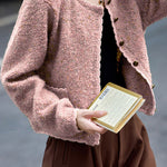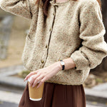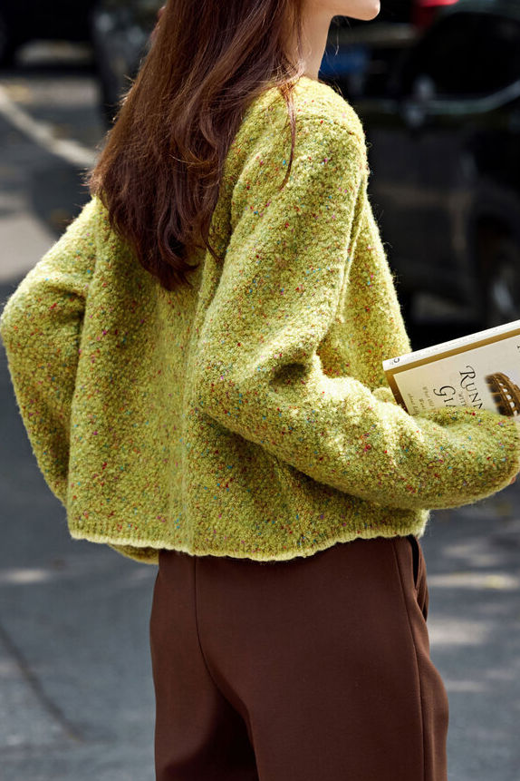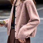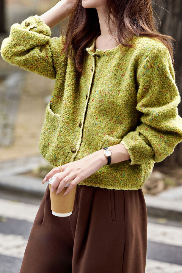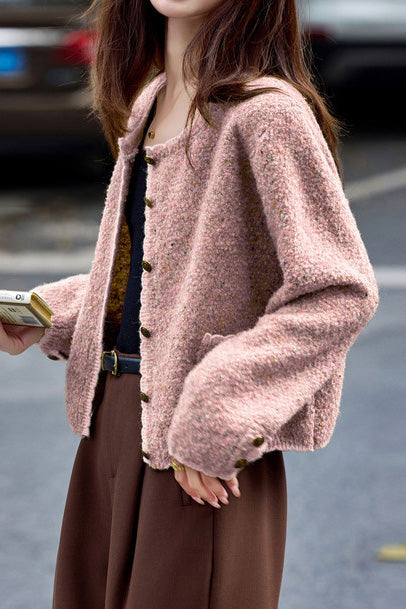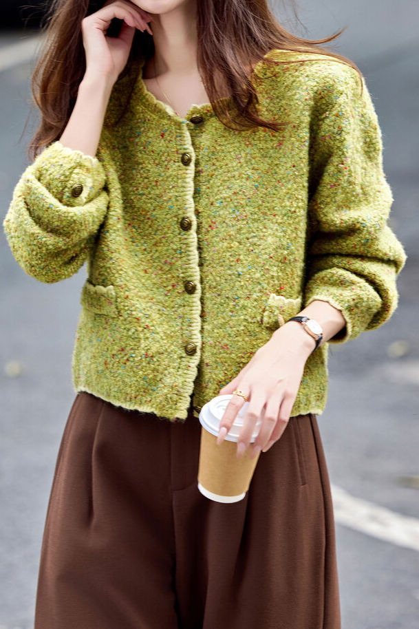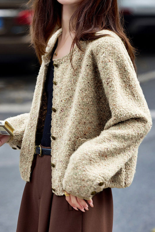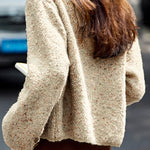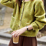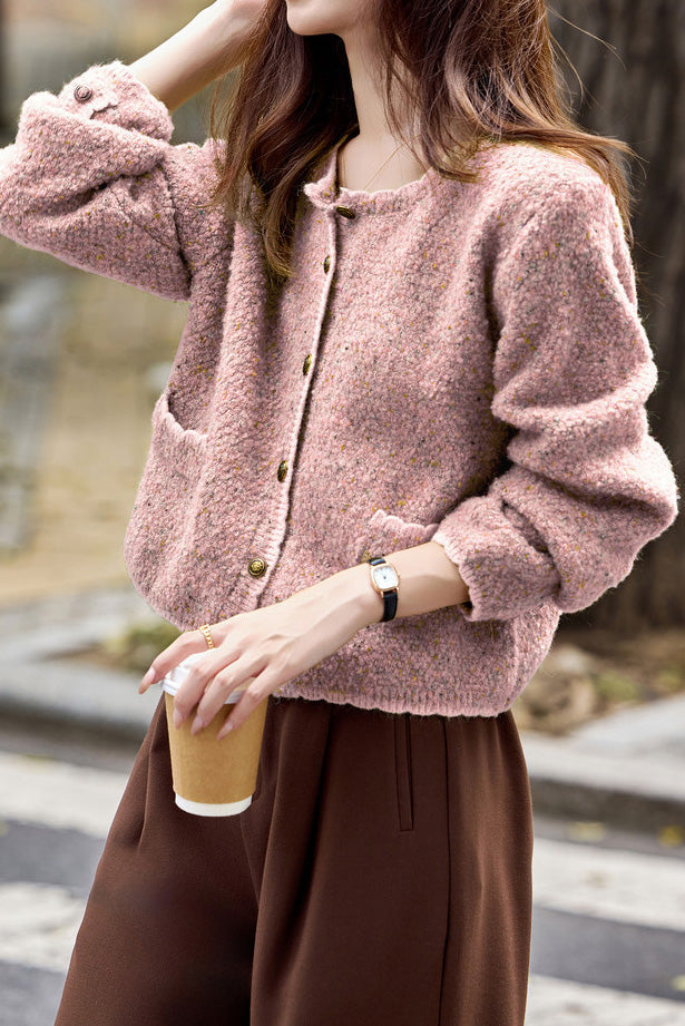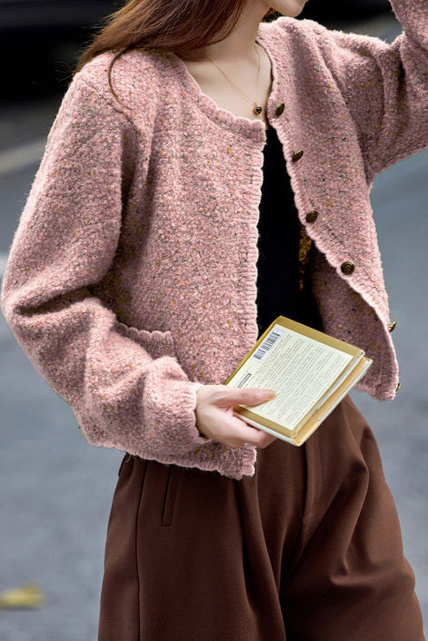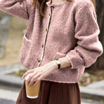 Casual Versatile Crew Neck Single-Breasted Flecked Knitted Cardigan