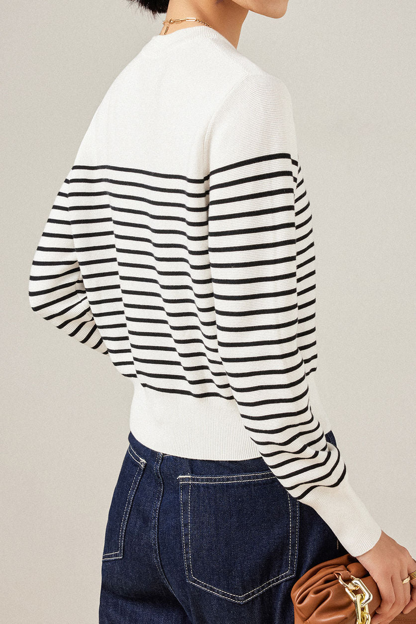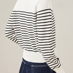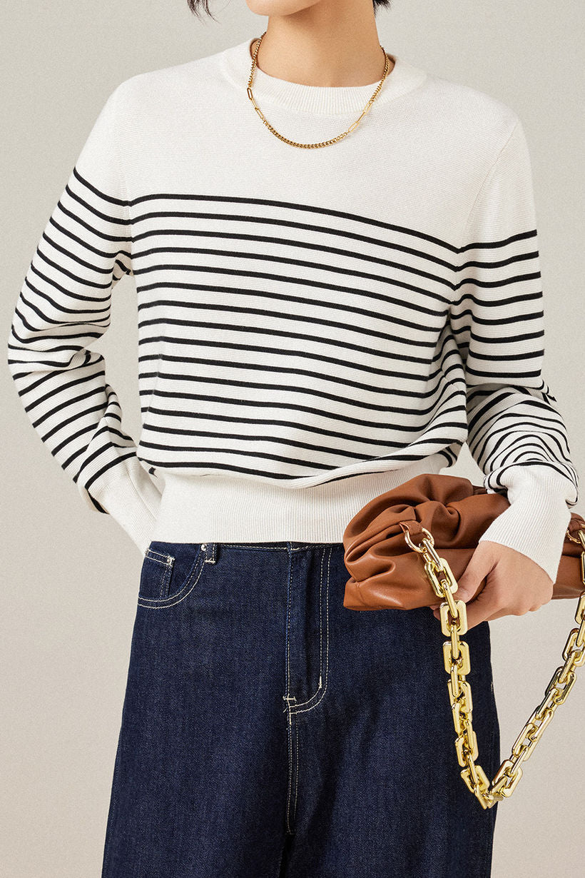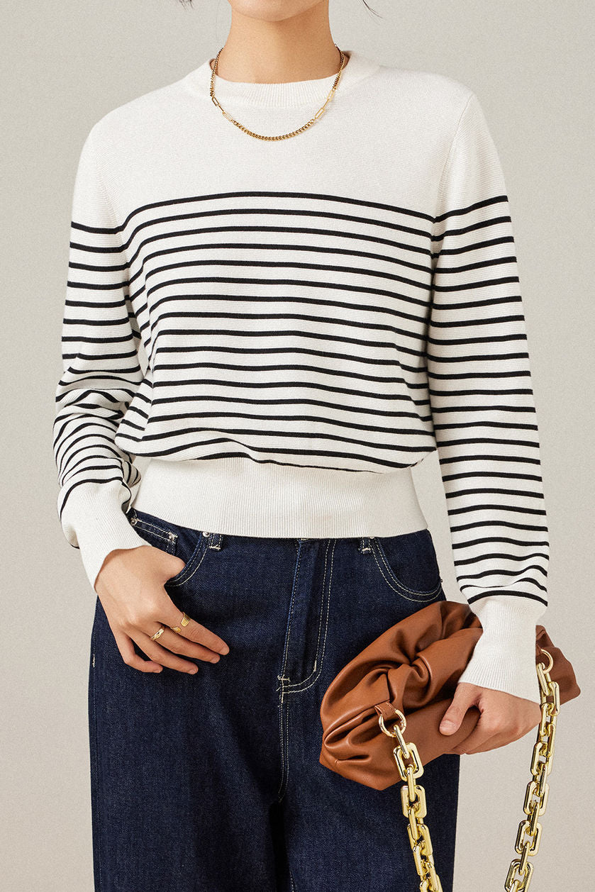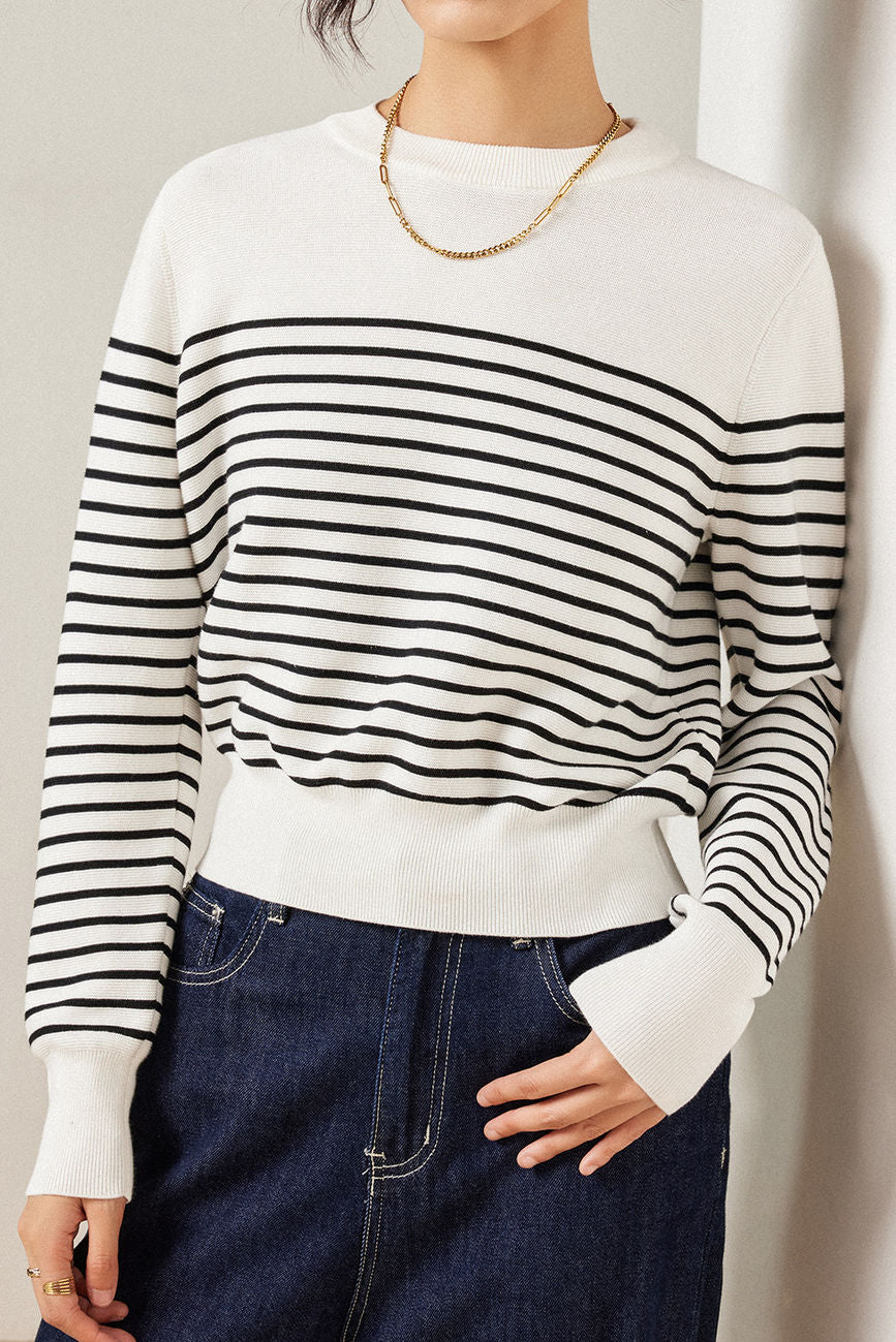 Casual Versatile Striped Crew Neck Pullover Knitted Top
