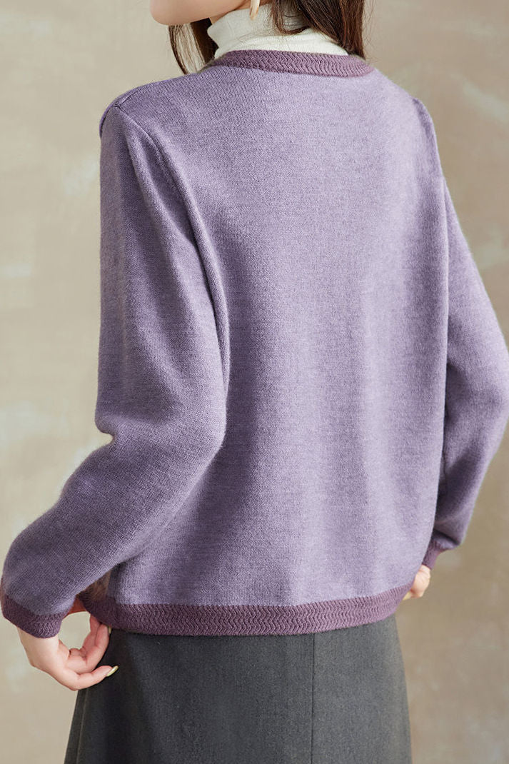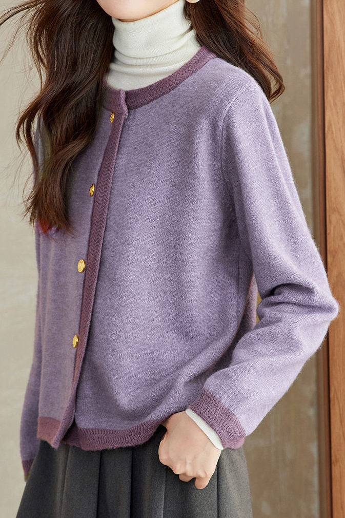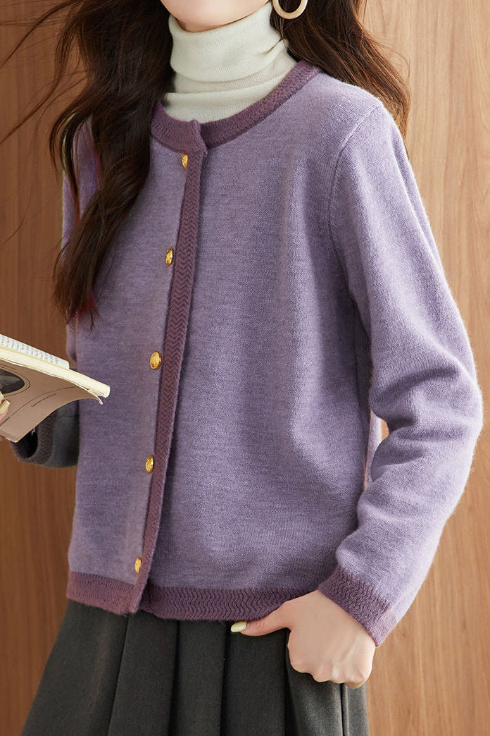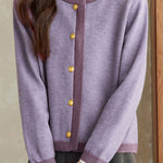 Casual Versatile Metal Button Color-Block Knitted Cardigan