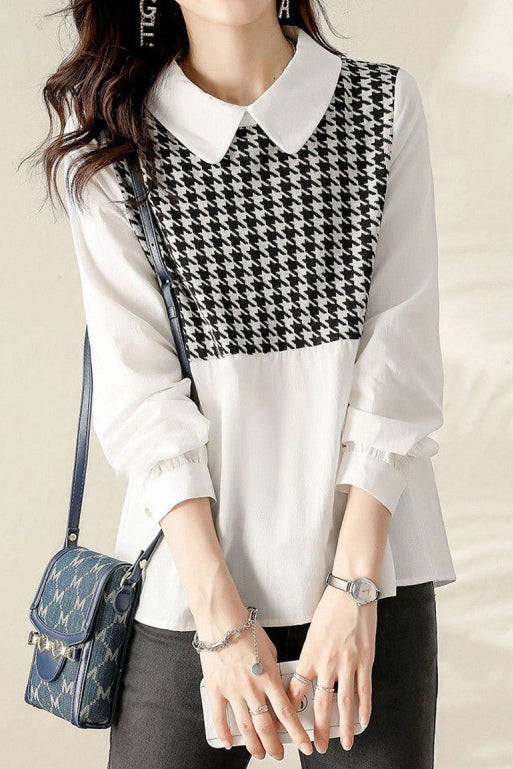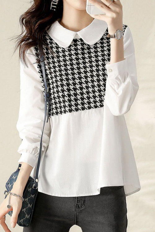 Houndstooth Patchwork Peter Pan Collar Shirt