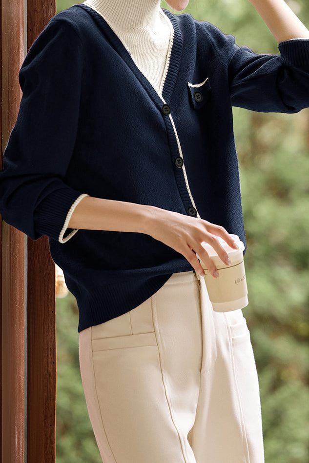 Casual Crew-Neck Fake Two-Piece Paneled Cardigan