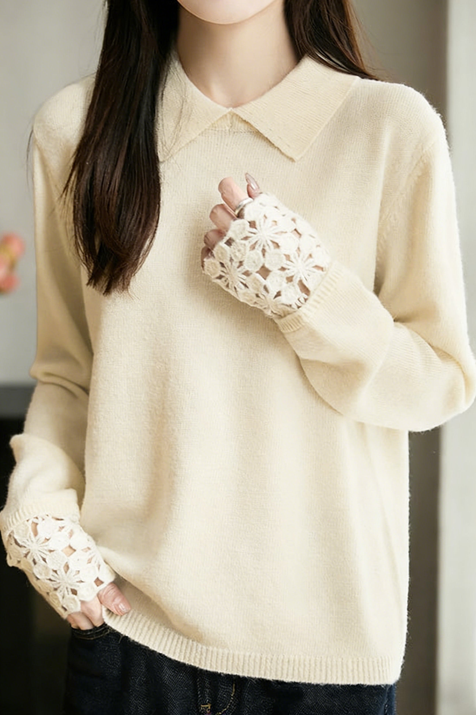 Casual Versatile Hollow-Out Pattern Lapel Knitted Top