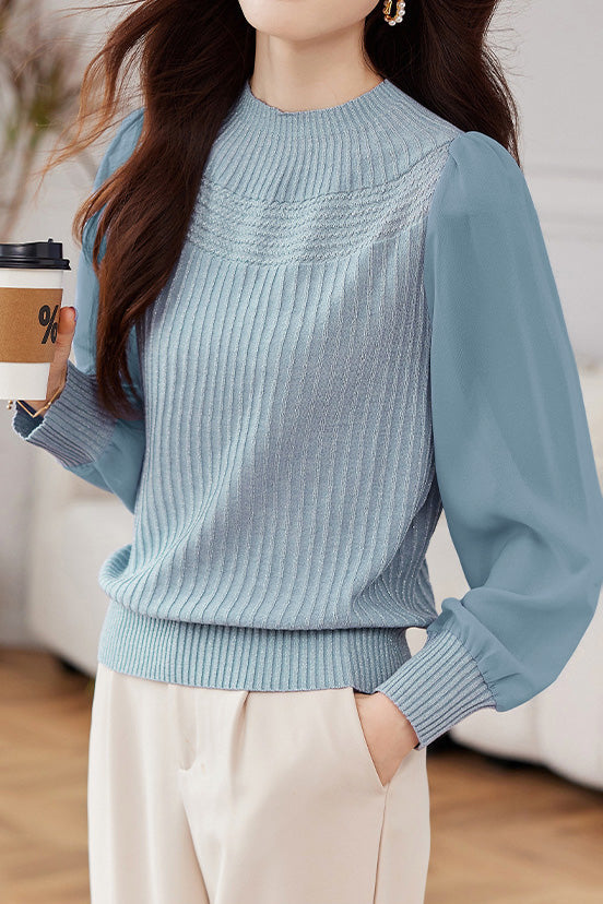 Casual Crew Neck Split Hem Bow-Detailed Knitted Top