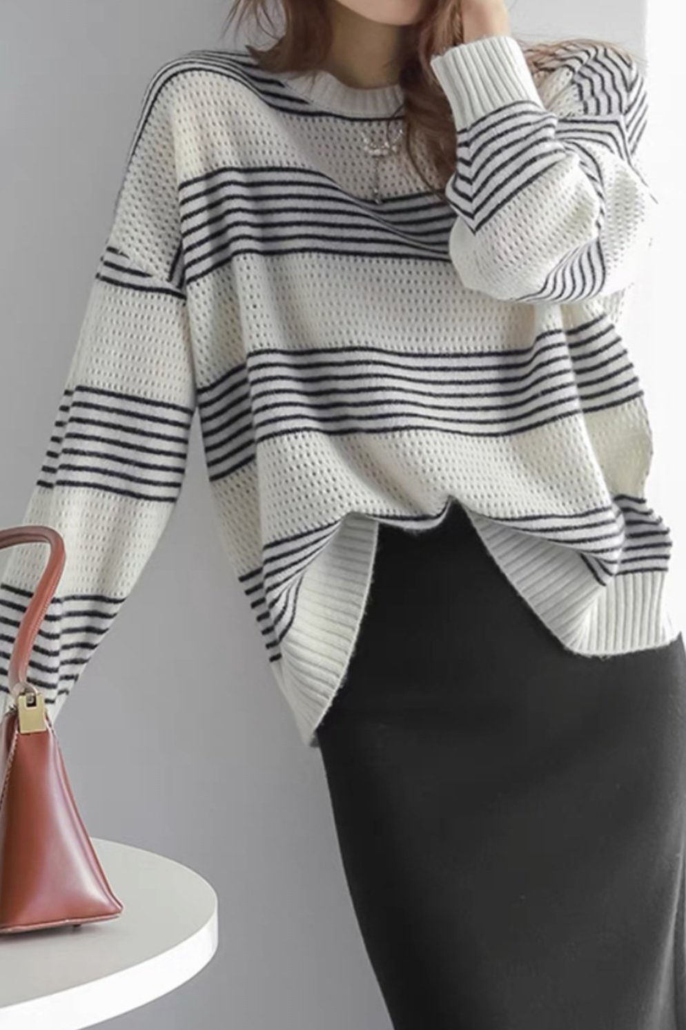 Casual Versatile Striped Hollow-Out Pullover Knitted Top