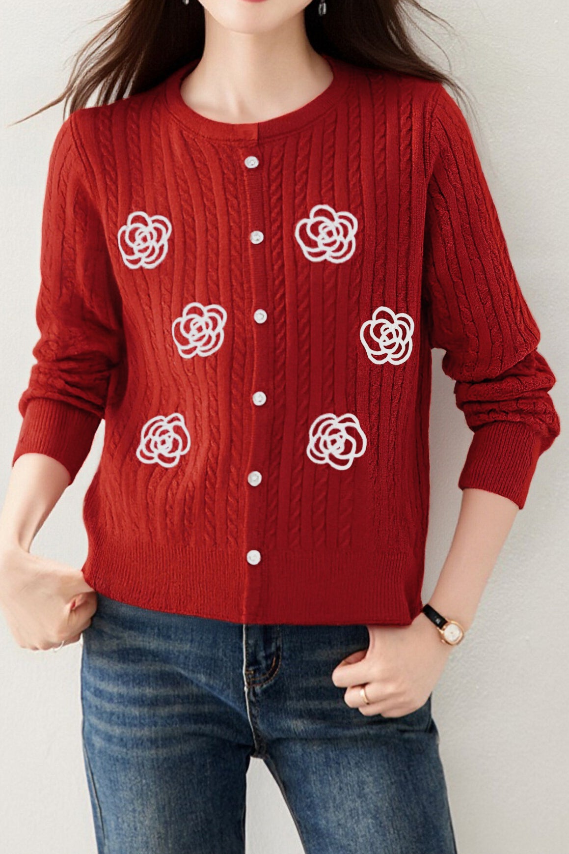 Casual Versatile Circle-Patterned Hollow-Out Jacquard Cardigan