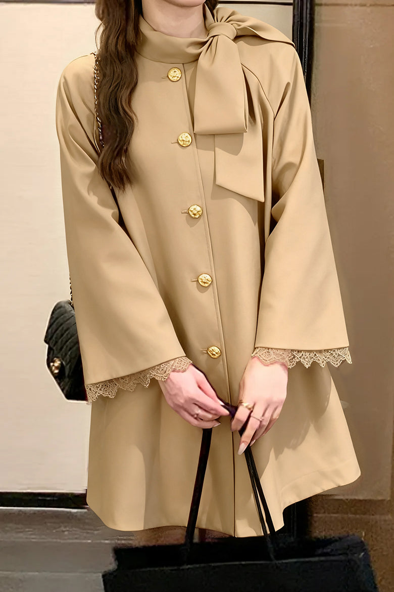Elegant Temperament Bow-Knot Sash Trench Coat