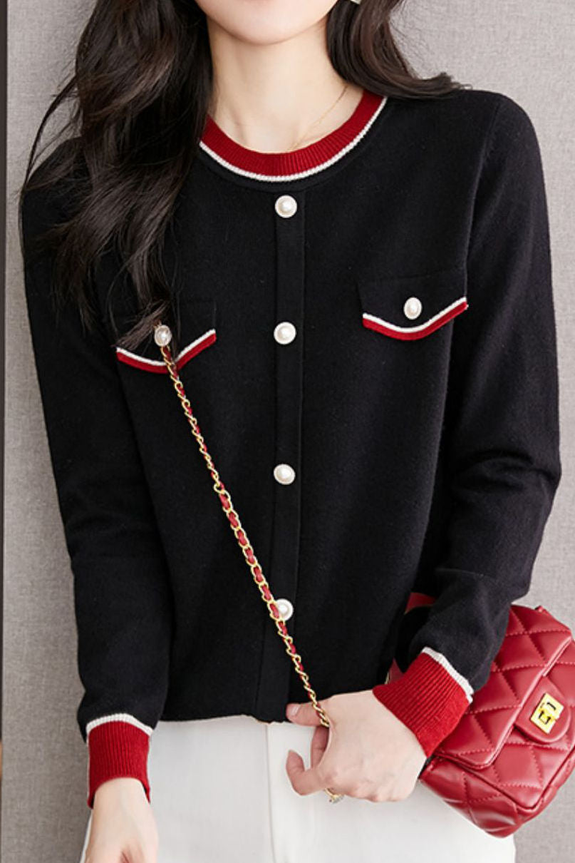 Casual Versatile Crew Neck Long-Sleeve Color-Block Knitted Top