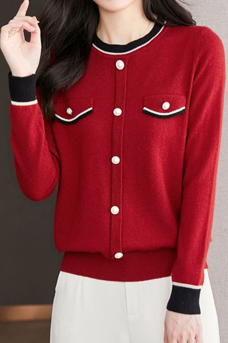 Casual Bow-Knot Brooch Color-Block Fake Two-Piece Cardigan