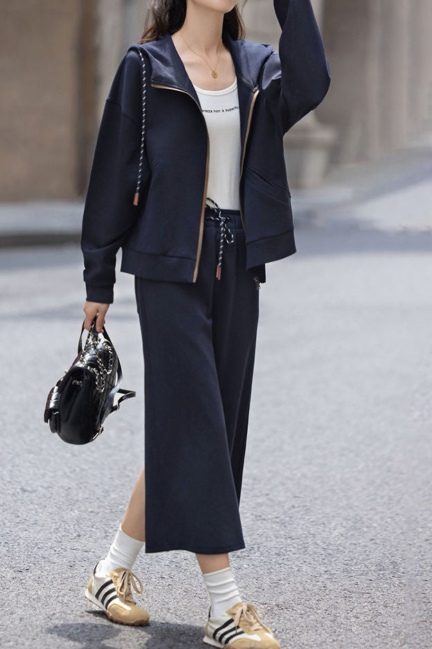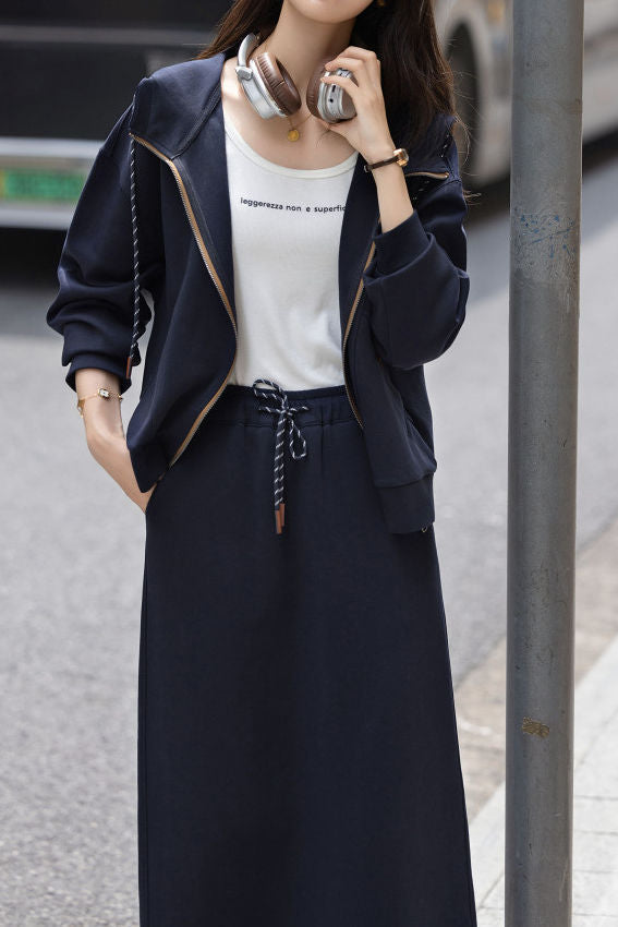 Casual Simple Hoodie Cardigan Straight Skirt 2-Piece Set