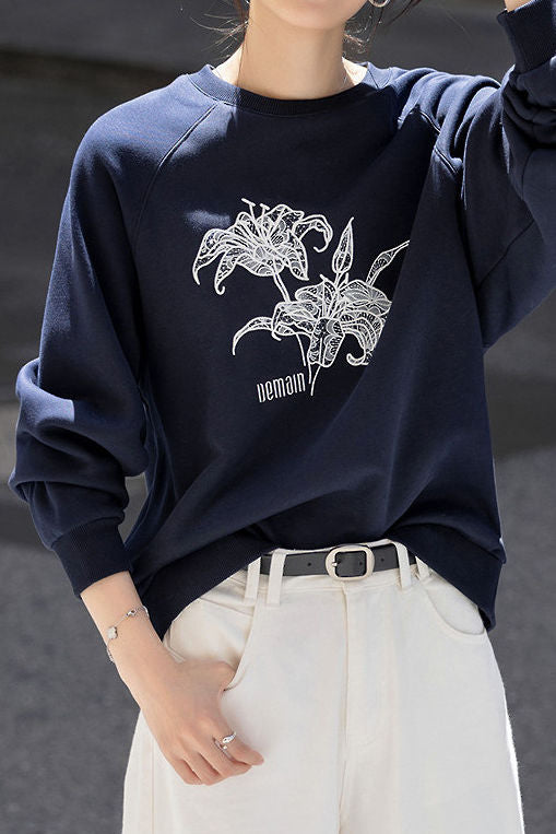 Casual Versatile Embroidered Printed Pullover Sweatshirt