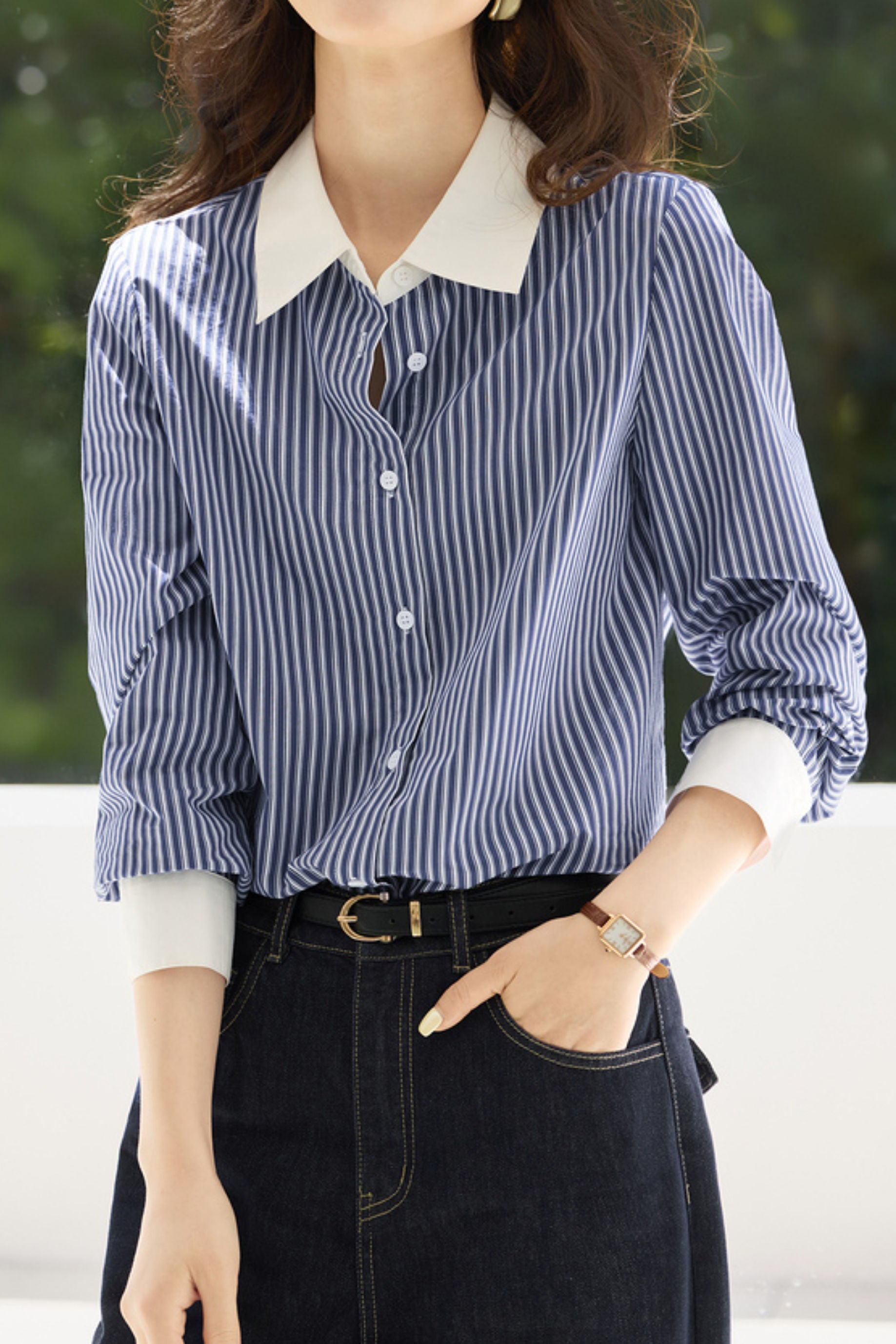 Temperament Retro Crew Neck Single-Breasted Long-Sleeve Shirt