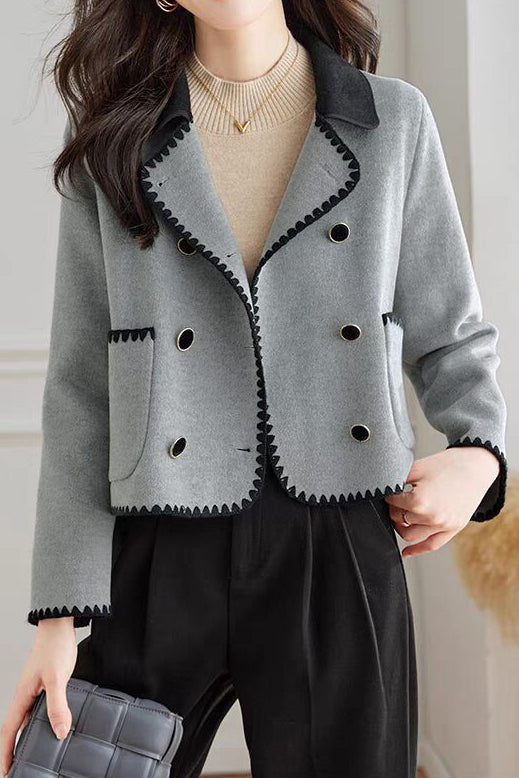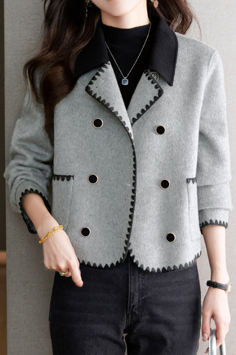 Elegant Temperament Color-Block Lapel Double-Faced Wool Coat