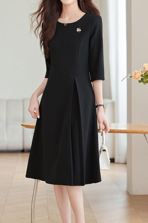 Elegant Mock Neck Waist-Cinched A-Line Knitted Dress
