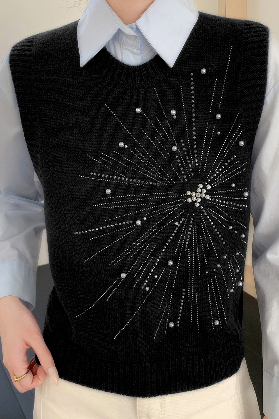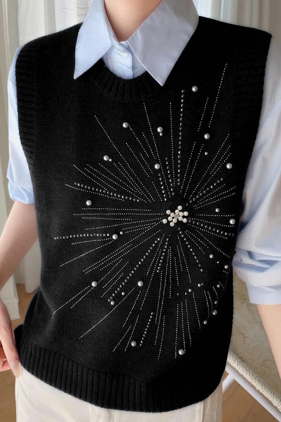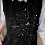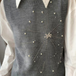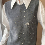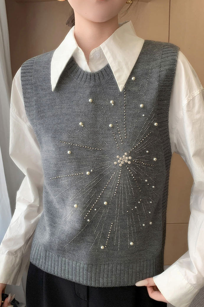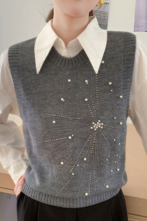 Casual Versatile Solid-Color Rhinestone Pearl Embellished Vest