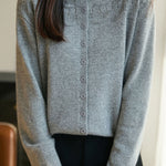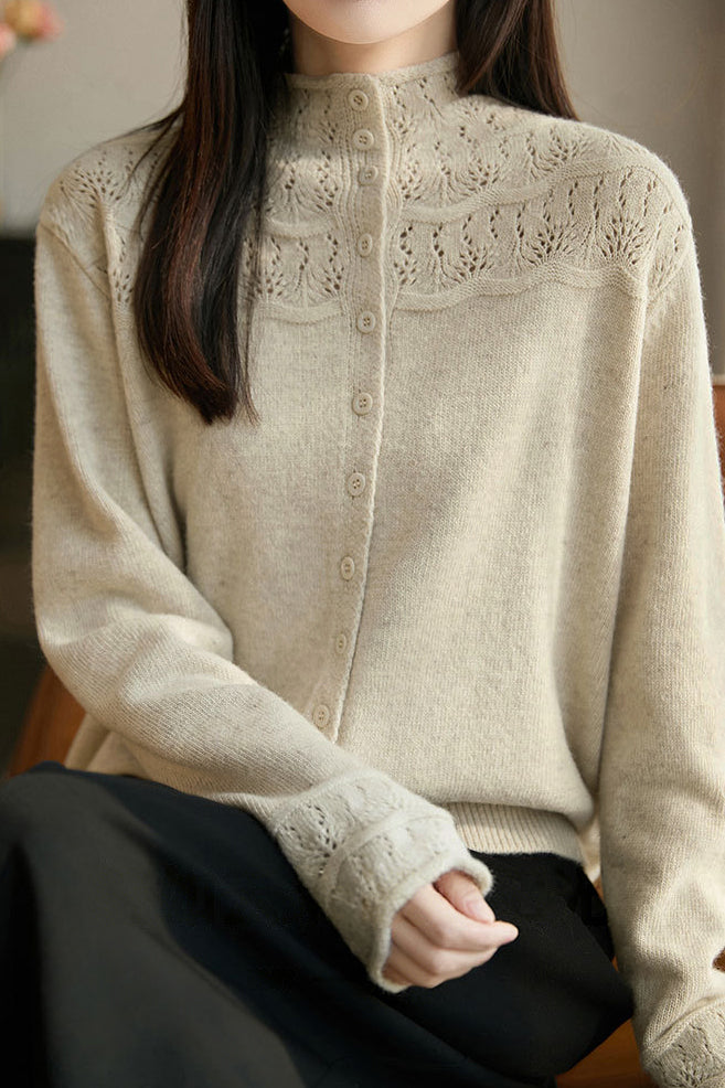 Casual Hollow-Out Jacquard Solid-Color Half-High Neck Knitted Cardigan