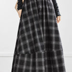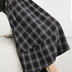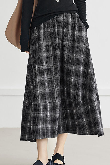 Casual Black and White Plaid Elastic-Waist A-Line Flare Skirt