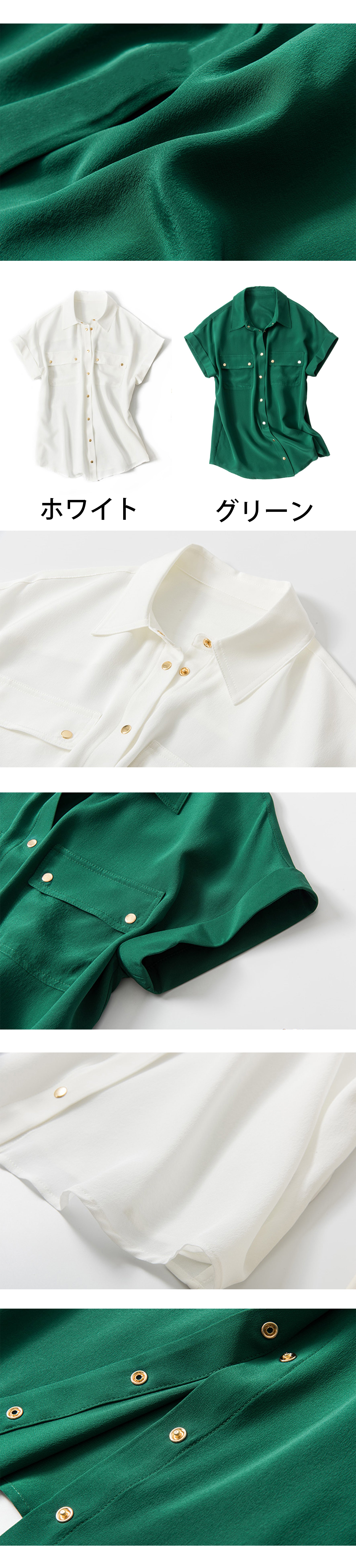 | Feature | Roll-up sleeves, solid color, flap pocket, bead decoration, front opening button, shirt collar, short sleeves |