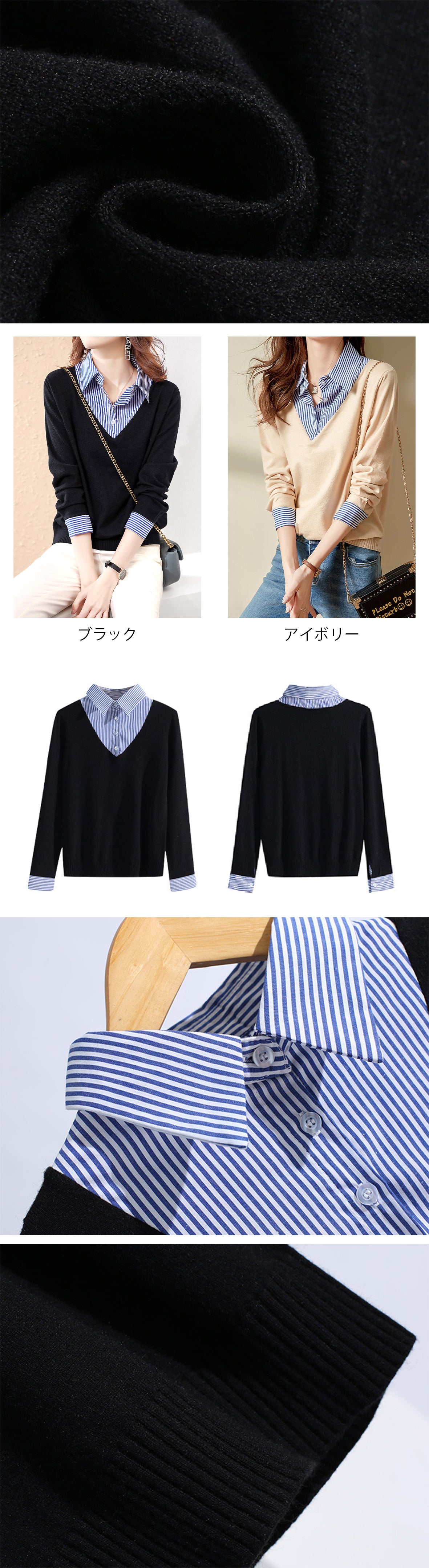 This layered look striped shirt contrast sweat is a game - changer! The combination of the striped shirt collar and the soft, cream - colored sweater is so stylish. It's comfortable and looks great with jeans. I get so many compliments when I wear it!