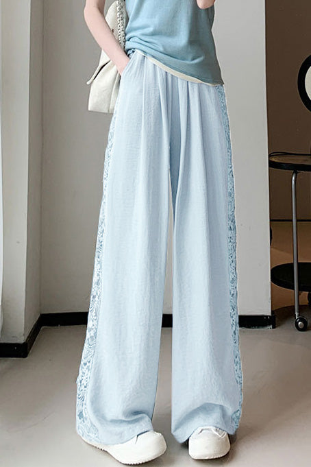 These blue loose casual spliced lace pants are so comfortable. The lace details add a delicate touch, and the straight fit is easy to style. They’re great for casual outings or even a casual office day. The fabric is breathable, making them ideal for spring and summer.