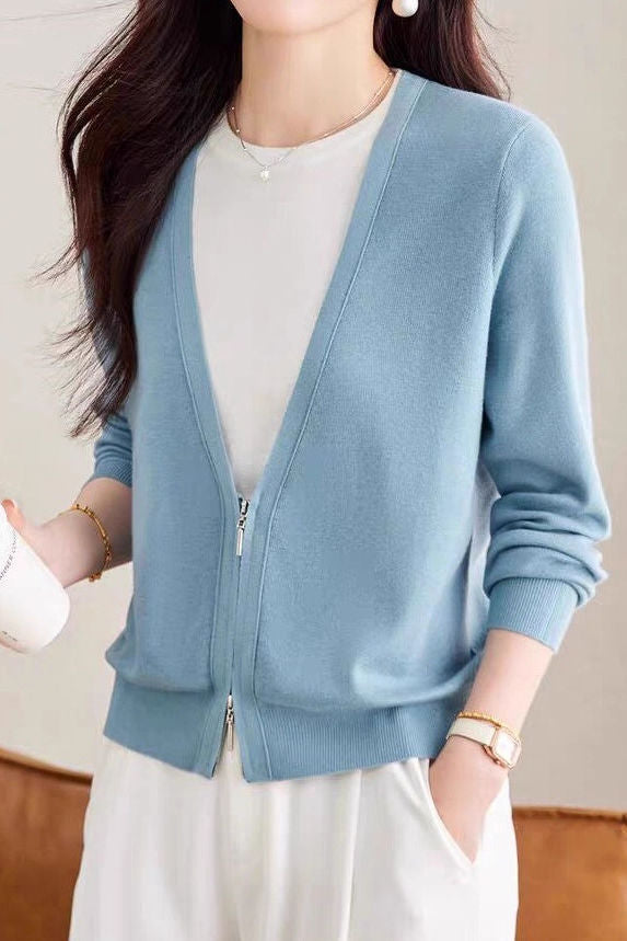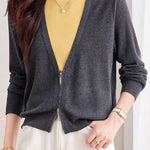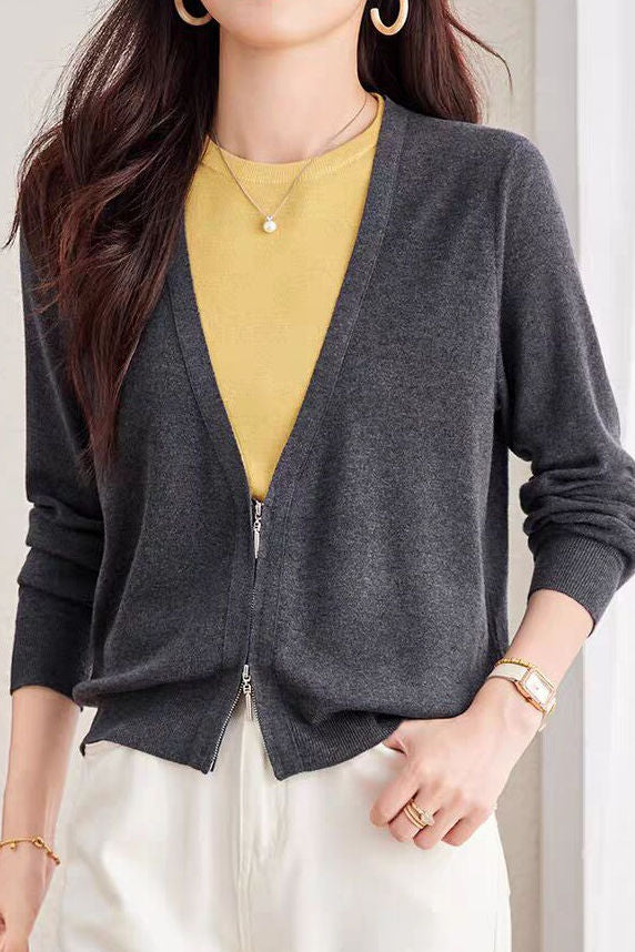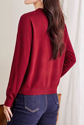 Knit Top, Crew Neck Long Sleeves, Fake Two-Piece Design (Zip Cardigan & Pullover Knit Top Combination) |