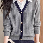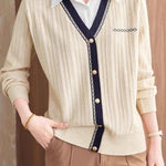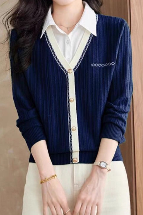 Office Casual Fake Two-Piece Shirt-Collar Knit Top